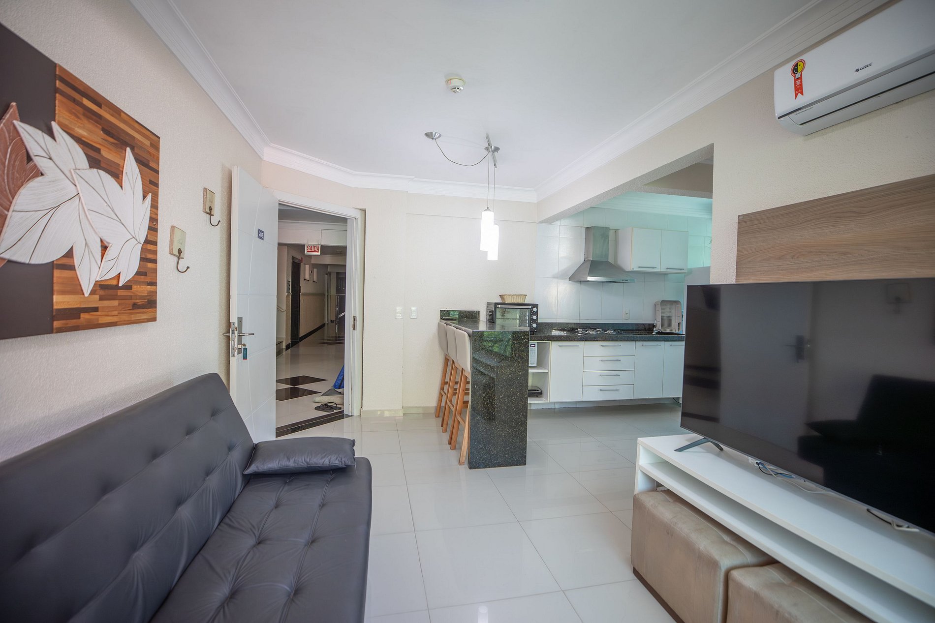 Coincide con la descripción. Ubicación buena, 400 m de la playa. La smartTV de la sala, fantástica, 49"! Anfitrión amable. Personal del resort amable. Lo mejor: piscina térmica del resort! Lo negativo: falta mejorar detalles, ducha no se puede regular, es frío o caliente, cae como chorros. La grifería está oxidada y antigua.