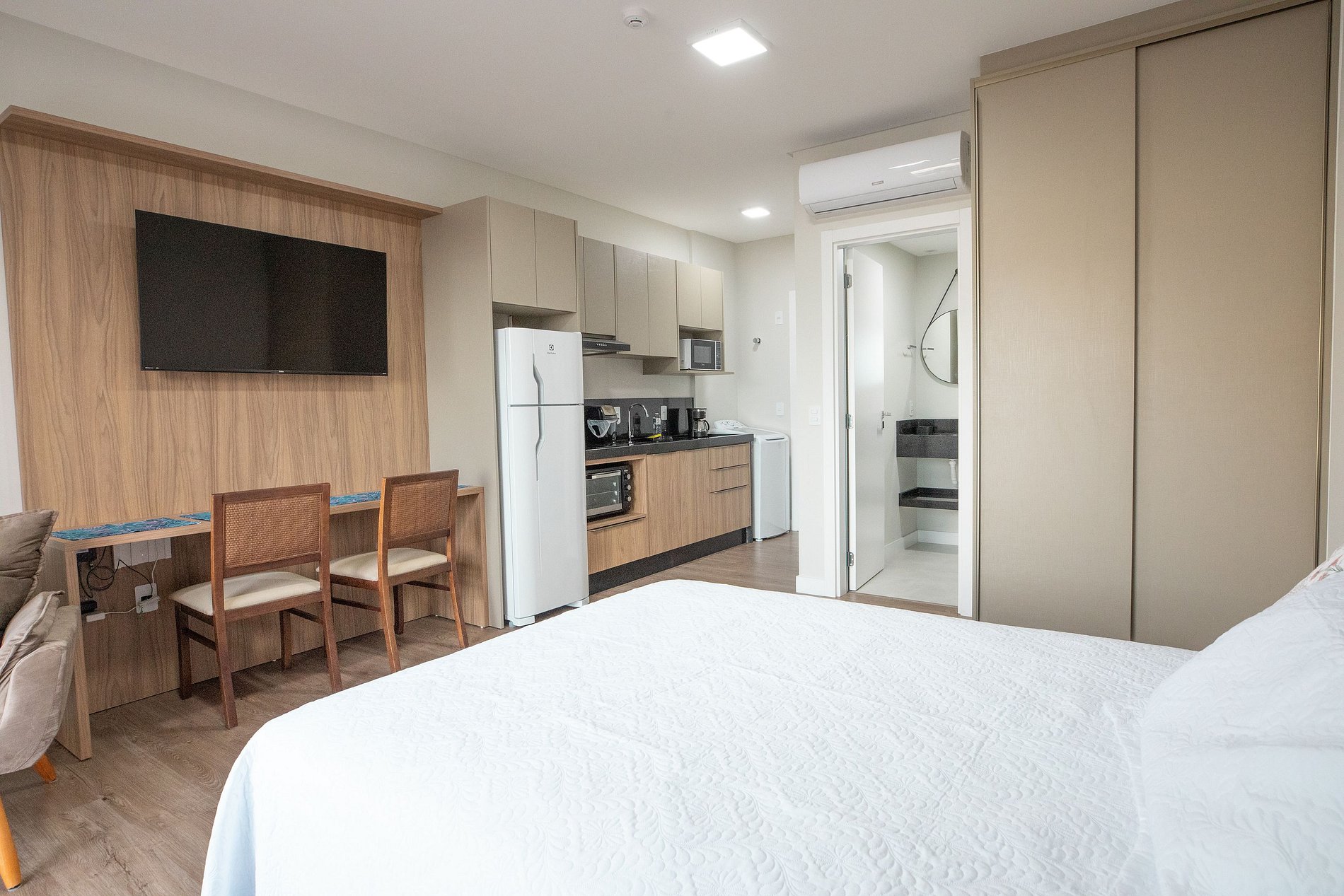Este flat foi projetado para proporcionar o máximo conforto. Com design moderno, mobiliário elegante e acabamentos de alta qualidade, é o lugar perfeito para chamar de lar, fora do seu lar.