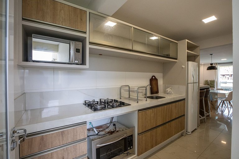 Ubicado en el condominio Village EcoPark, tiene vista a la piscina, 2 habitaciones con aire acondicionado, una parrilla en el balcón, cocina completa, wifi de alta velocidad y Smart TV. El condominio, además de la piscina, cuenta con salón de juegos y gimnasio para tu comodidad.