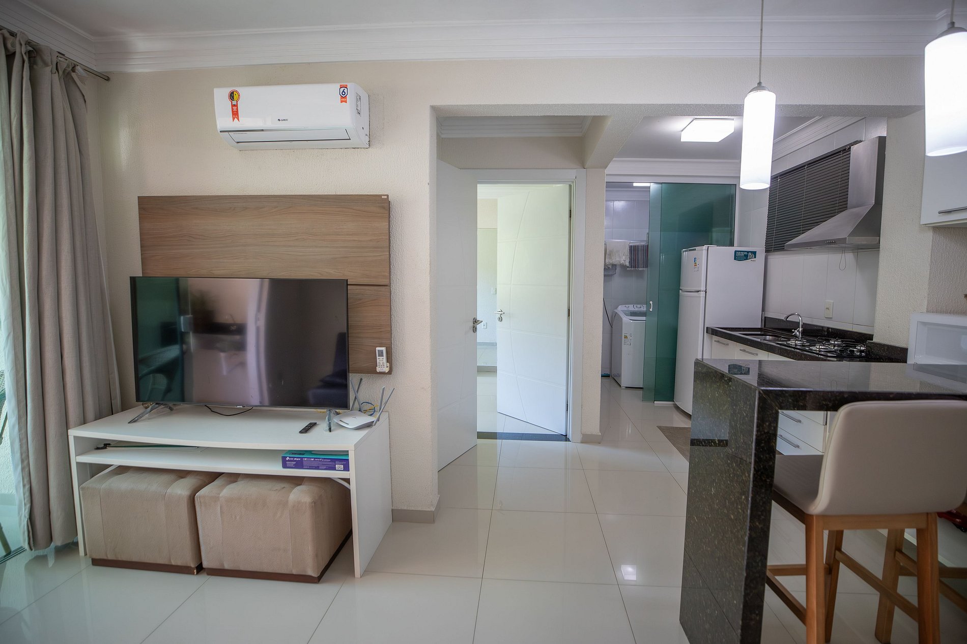 Apartamento aconchegante localizado em um luxuoso condomínio com estrutura completa. Localizado a 350 metros da praia.