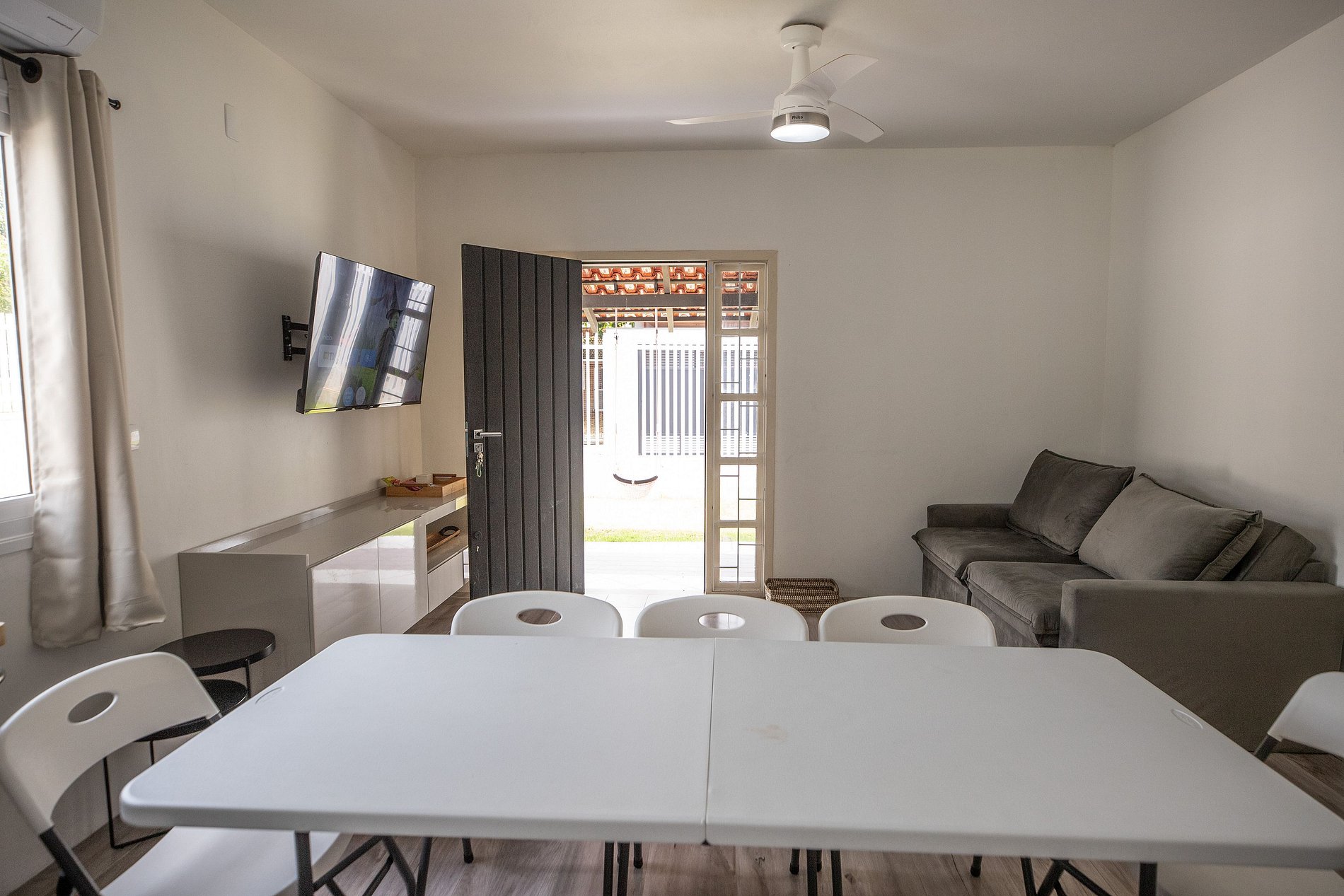 Pensado para familias: sala con A/C, cocina funcional (cocina, microondas, heladera, utensilios) y brinquedoteca en el 3º cuarto — un ambiente seguro para que los niños jueguen mientras los adultos descansan. Fibra óptica para trabajar/streaming y patio con estacionamiento para varios autos. ¿Te gustó? Confirma hoy y vive la experiencia Bestiny.