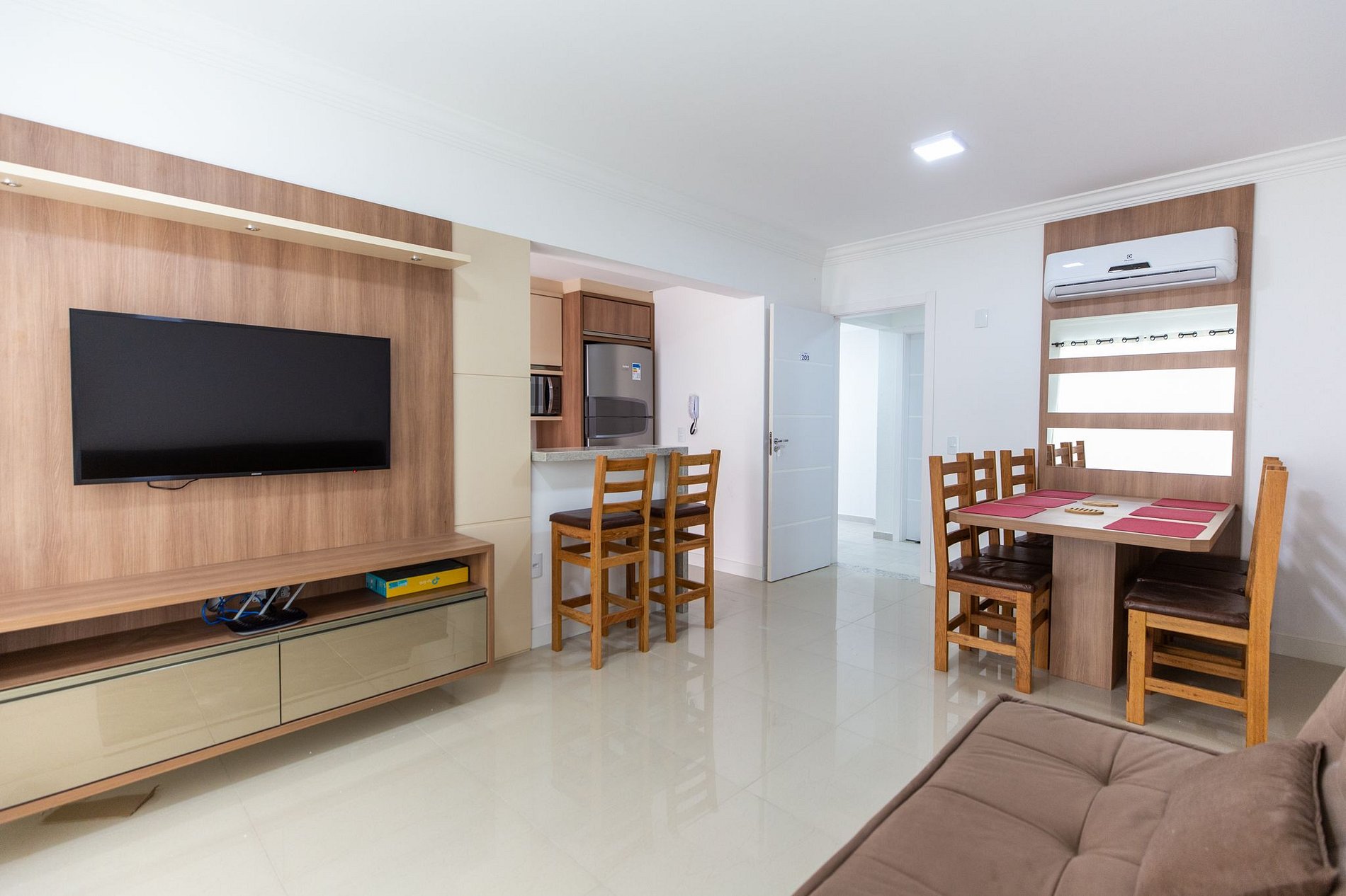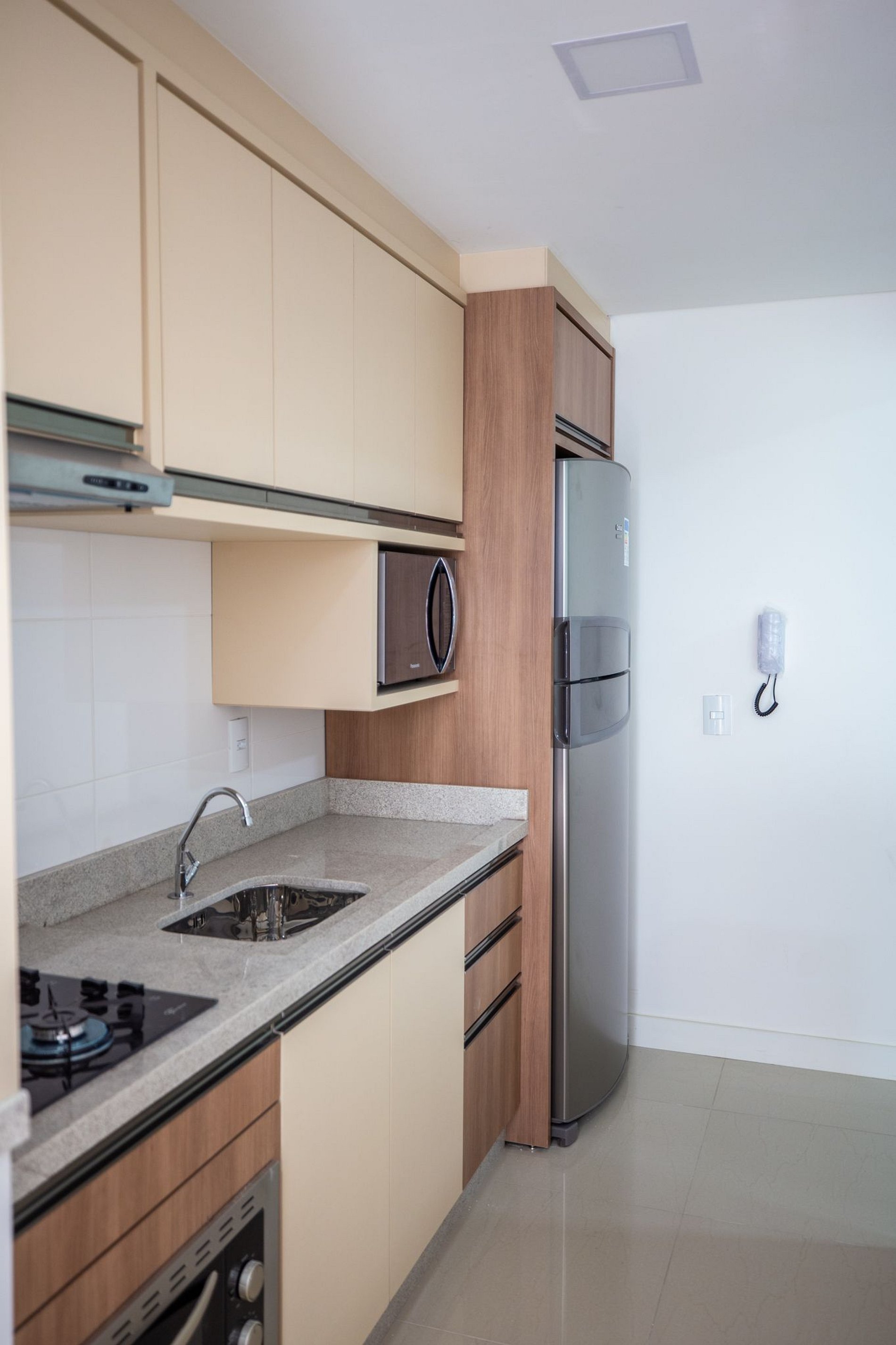 Apartamento adequado para estadias a trabalho ou a passeio. Condomínio inclui área de lazer com piscina e sala de jogos.