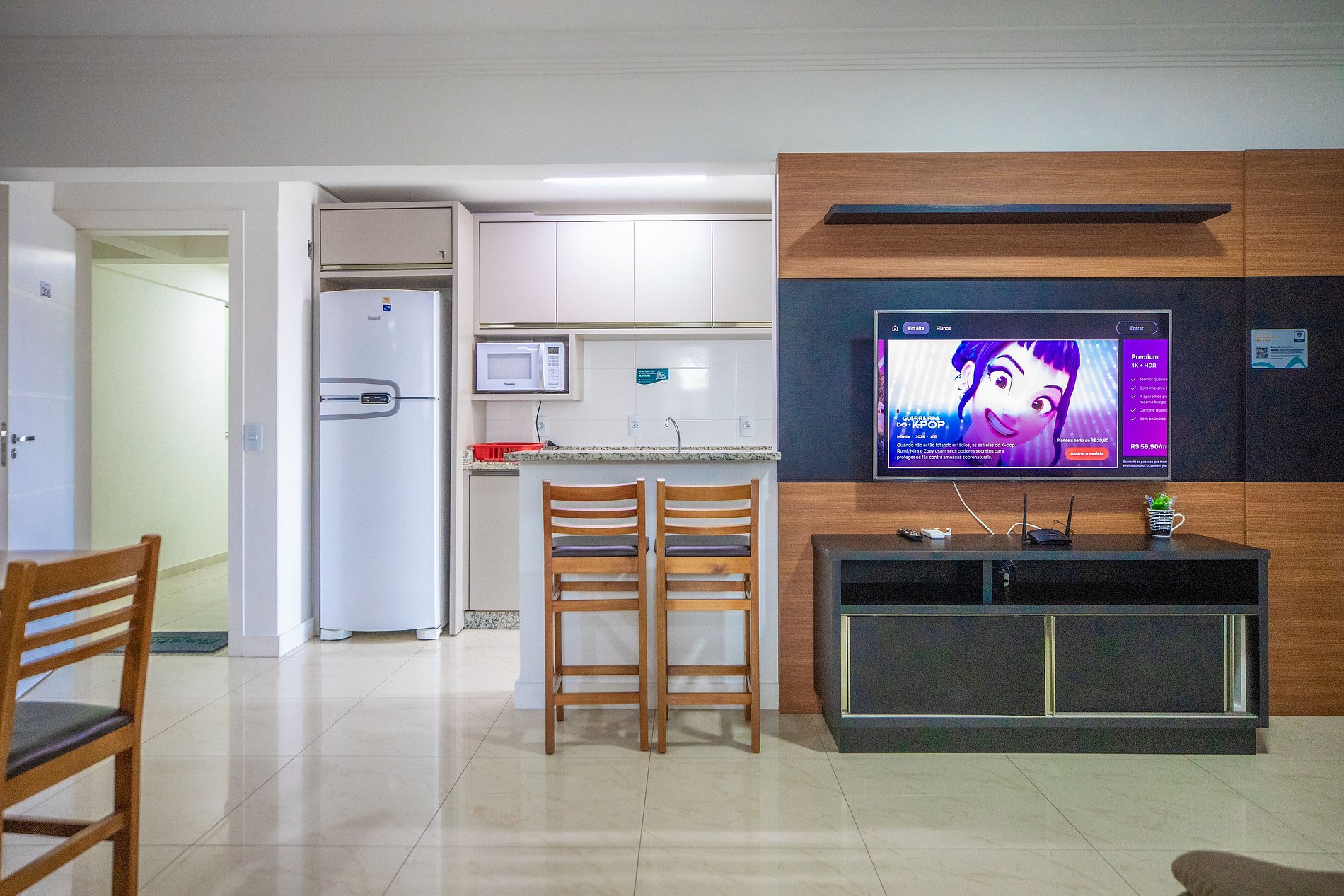 Ar condicionado e TV completa (inclusive Netflix).