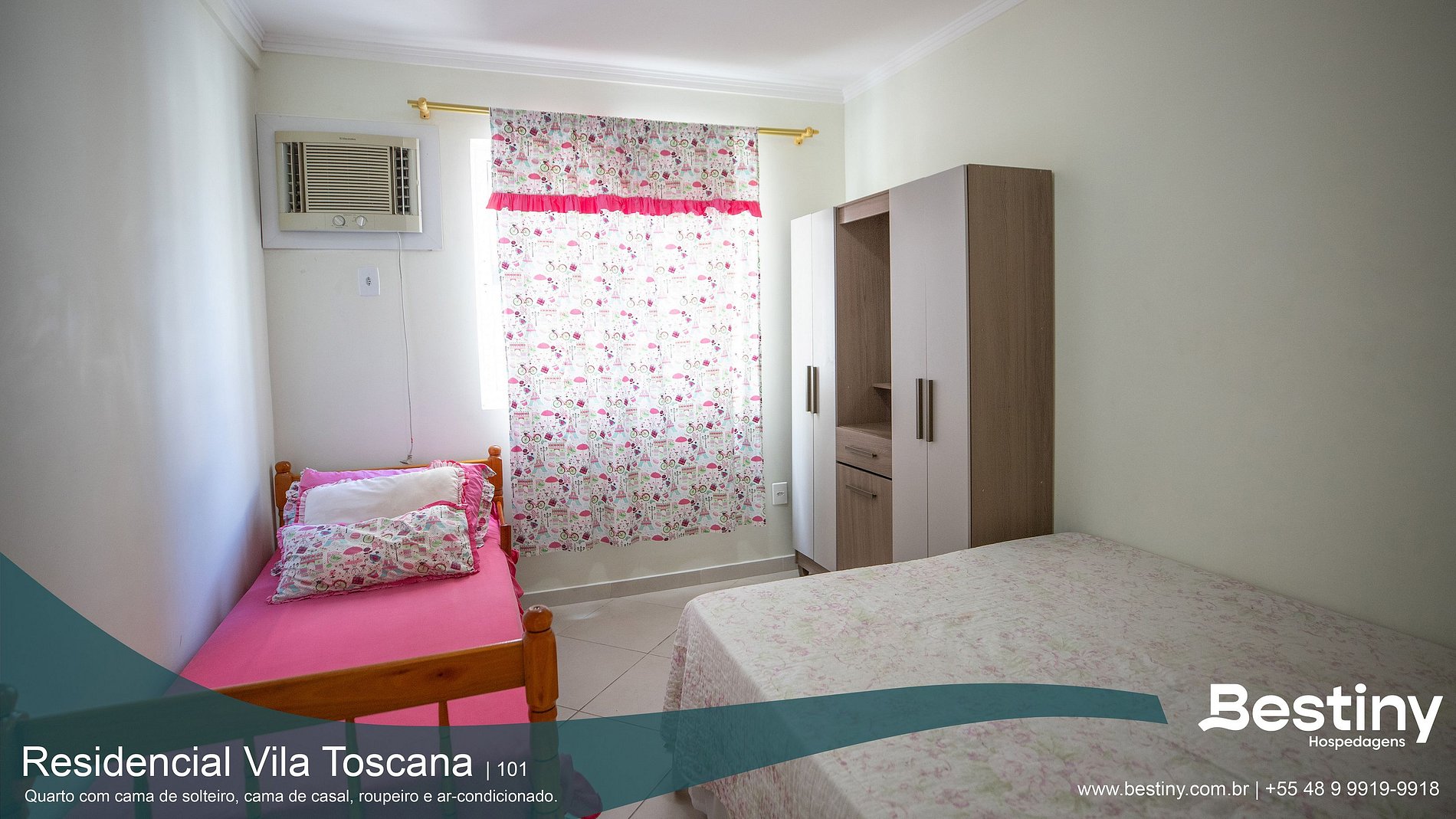 En el Canto de Bombas (Costão), zona noble y tranquila, Vila Toscana 101B recibe a tu familia con 3 dormitorios (1 suite matrimonial; 2º doble + individual; 3º doble + individual), cocina completa y balcón amplio con parrilla, ideal para el atardecer. A pasos de una playa de arena ancha y senderos en el costón. Mira fotos, elige fechas y reserva ahora.