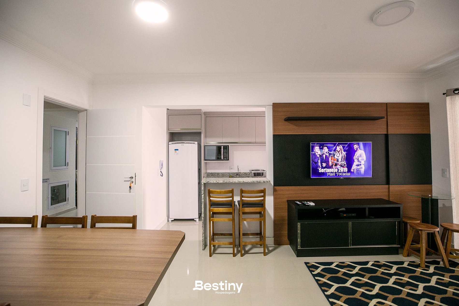 Um ótimo local para ficar em família, possui locais próximos de comércio e dá para ir para a praia de bombas tranquilamente. O apartamento é muito bonito e novo. Foi uma reserva tranquila e foi possível aproveitar todas as comodidades do local.