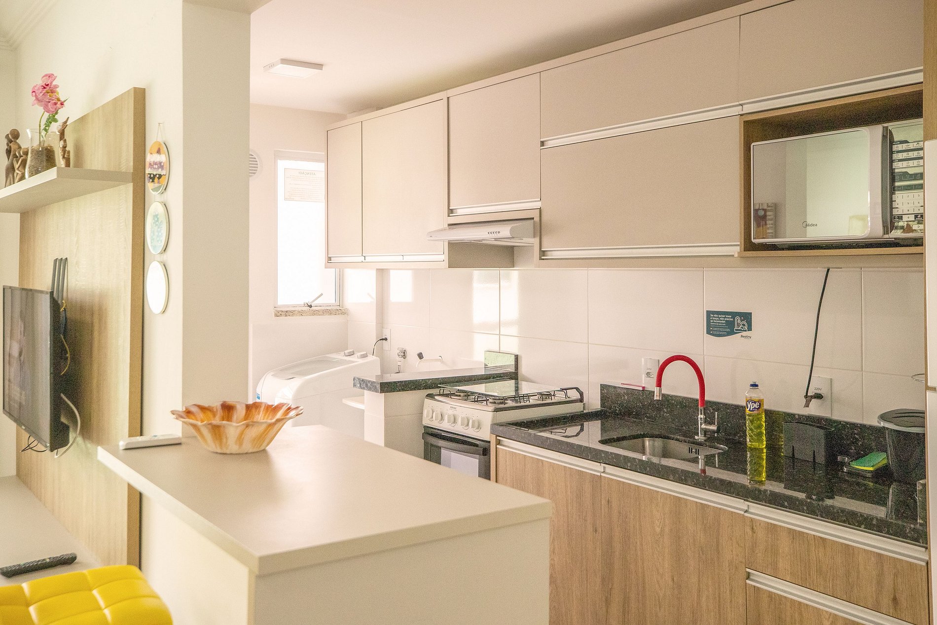Apartamentos amplos com ar condicionado e cozinha completa. Estacionamento coberto próprio.