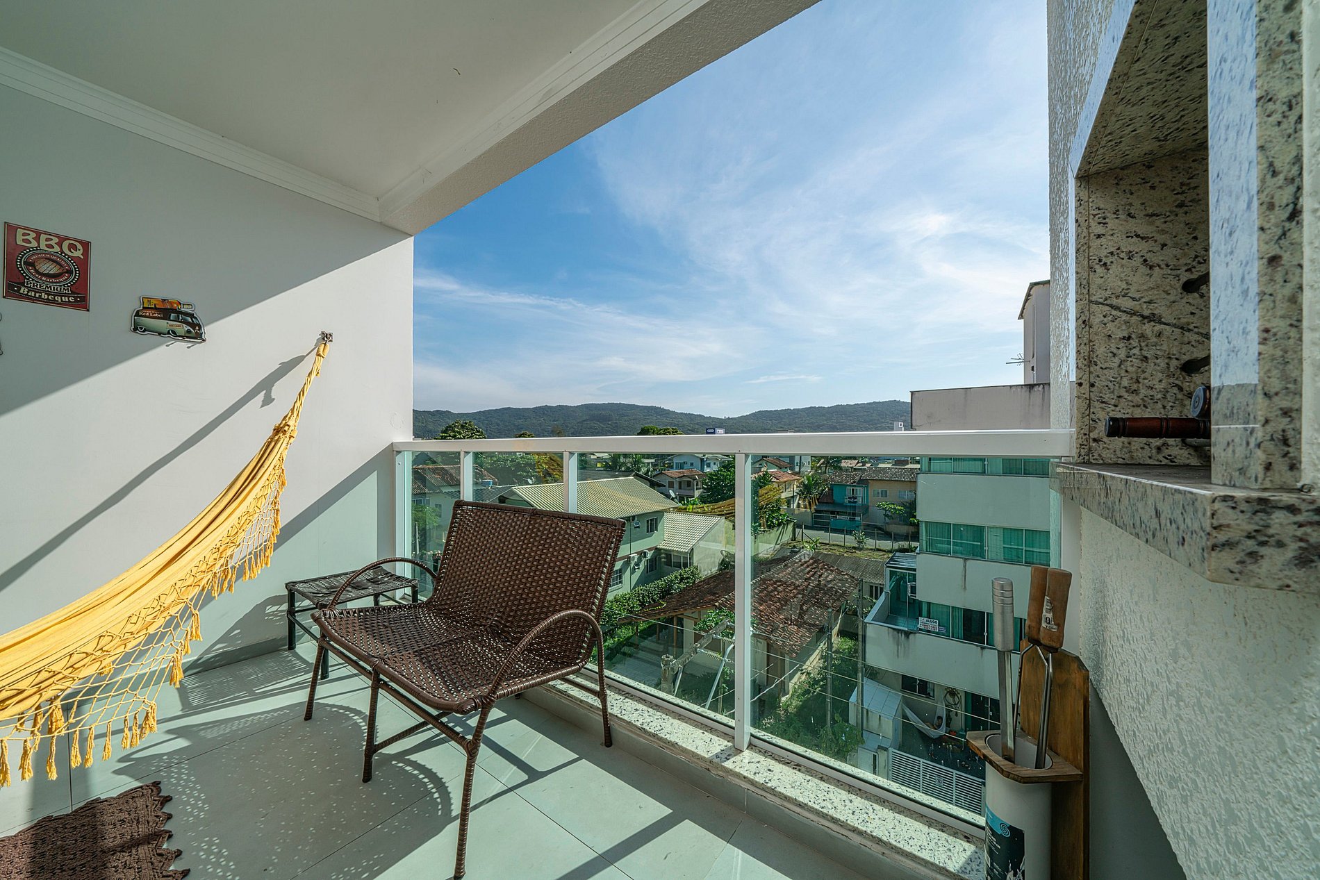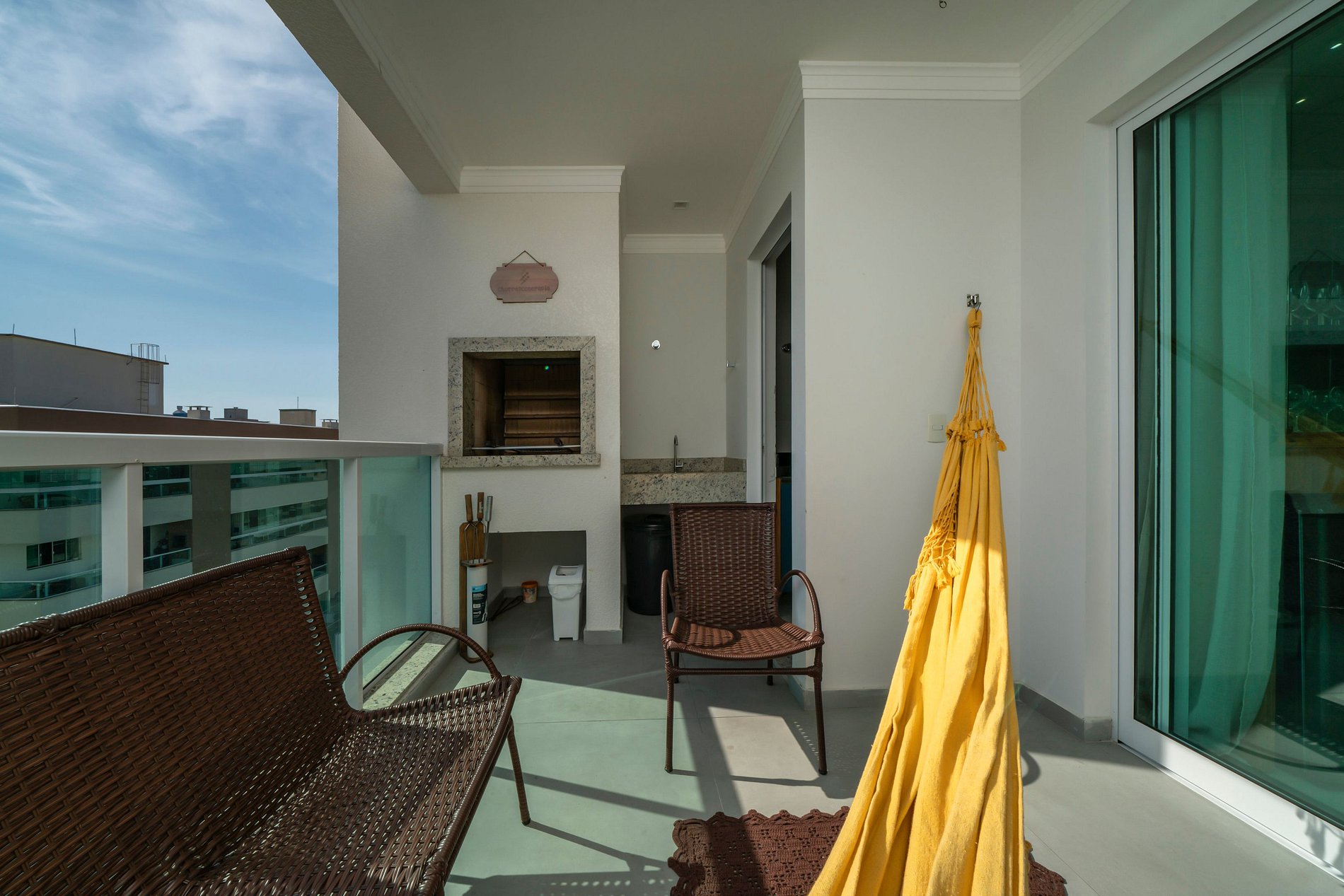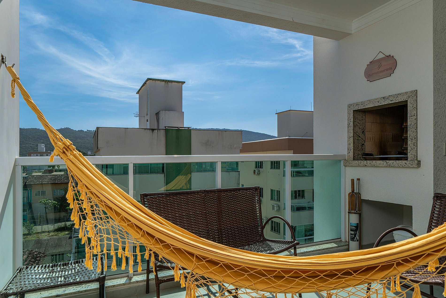 Balcón gourmet con parrilla y hamaca