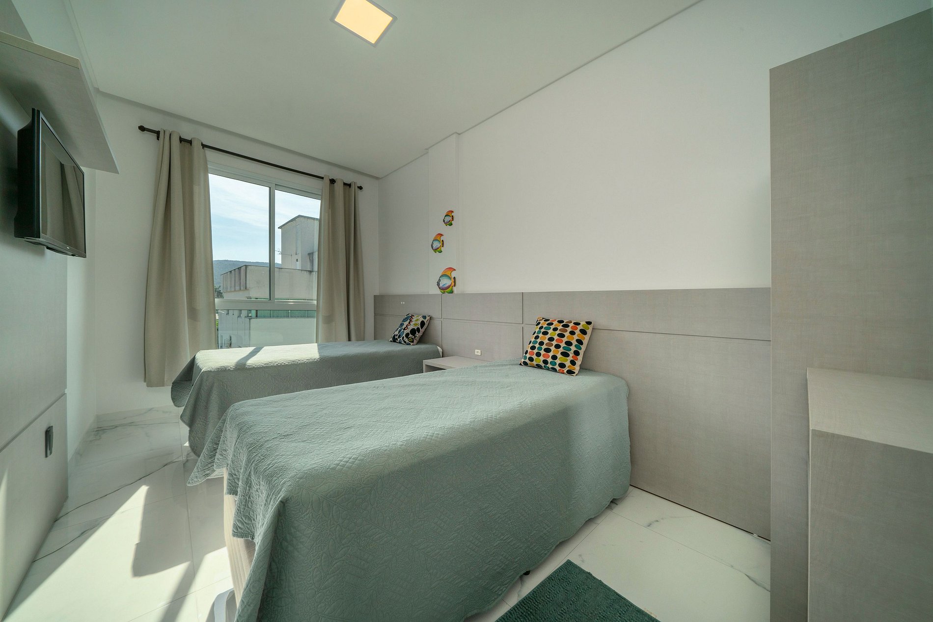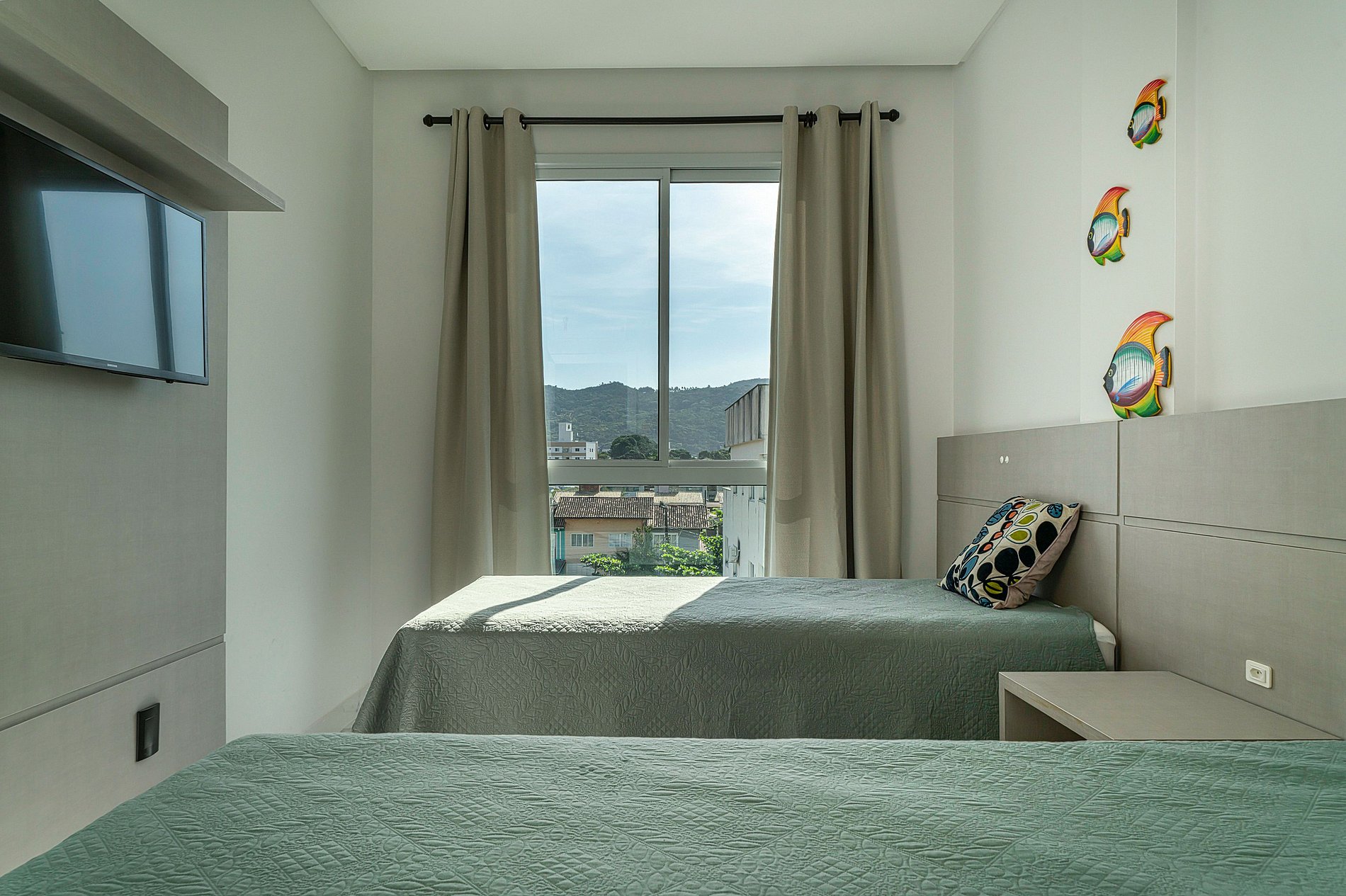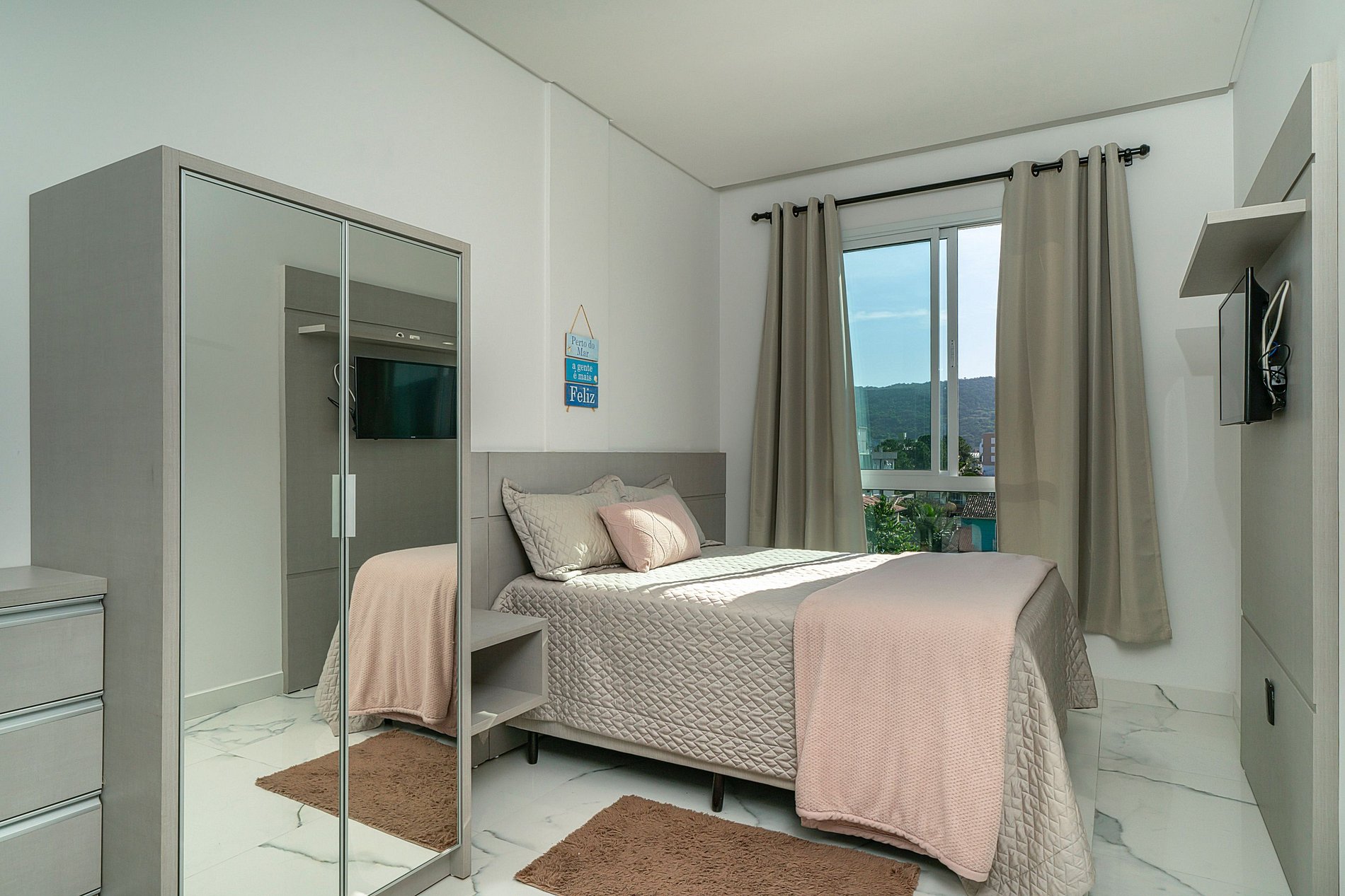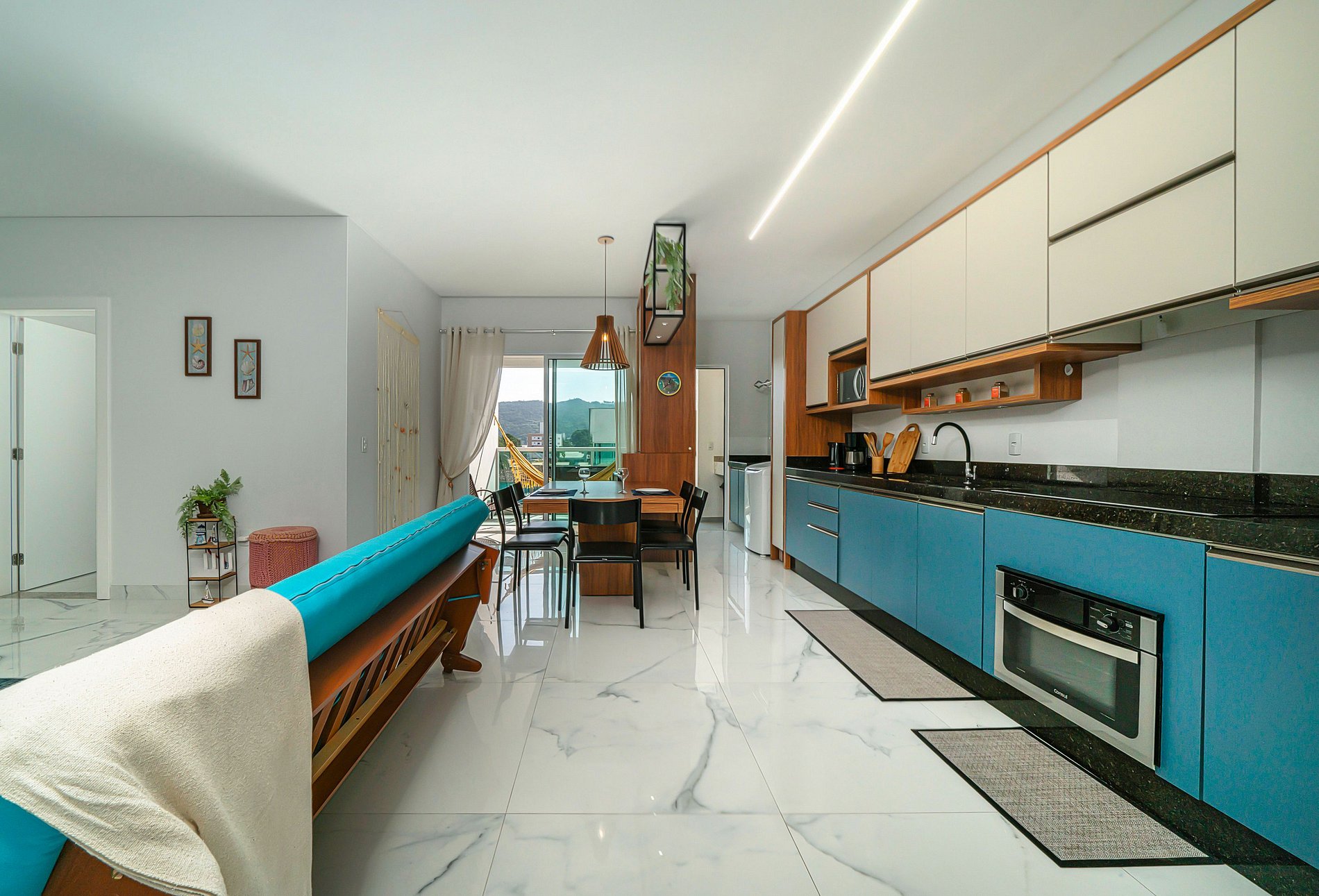 Departamento nuevo y cómodo a 450 m de la playa: 1 suite matrimonial, dormitorio con 2 camas individuales y sofá-cama doble (hasta 6 huéspedes). Aire acondicionado en todos los ambientes, sala integrada al balcón gourmet (parrilla y hamaca), cocina completa, internet por fibra dedicada y 2 cocheras. Edificio con ascensor y lobby con música. TV en los dormitorios. Ubicación práctica, cerca de comercios y restaurantes. Aquí, la estadía es parte del viaje.
