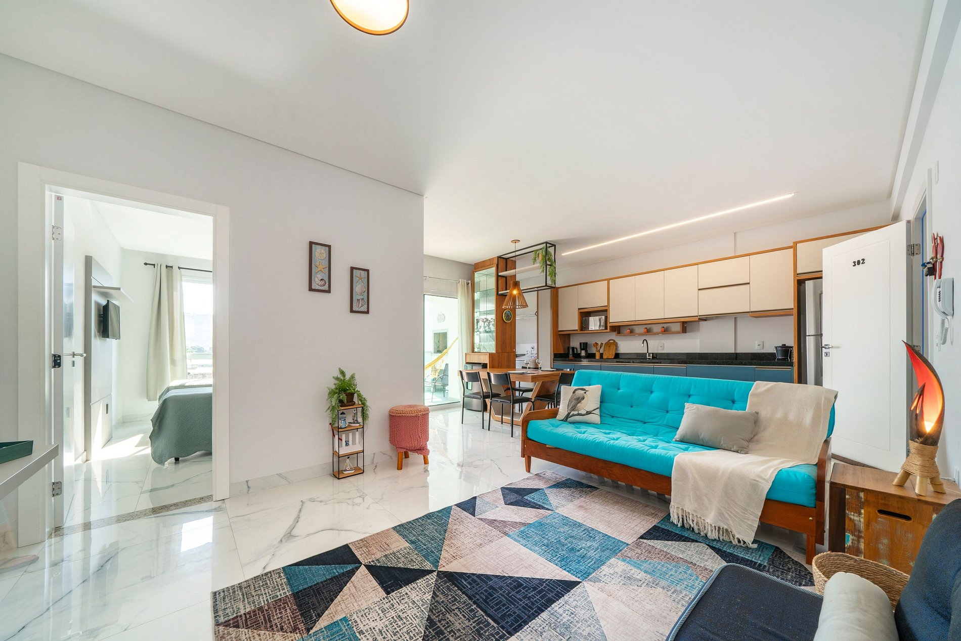 A 450 m de la playa, rodeado de comercios y buenos restaurantes. La base ideal para disfrutar el día en la arena y volver a un hogar acogedor con parrilla en el balcón.