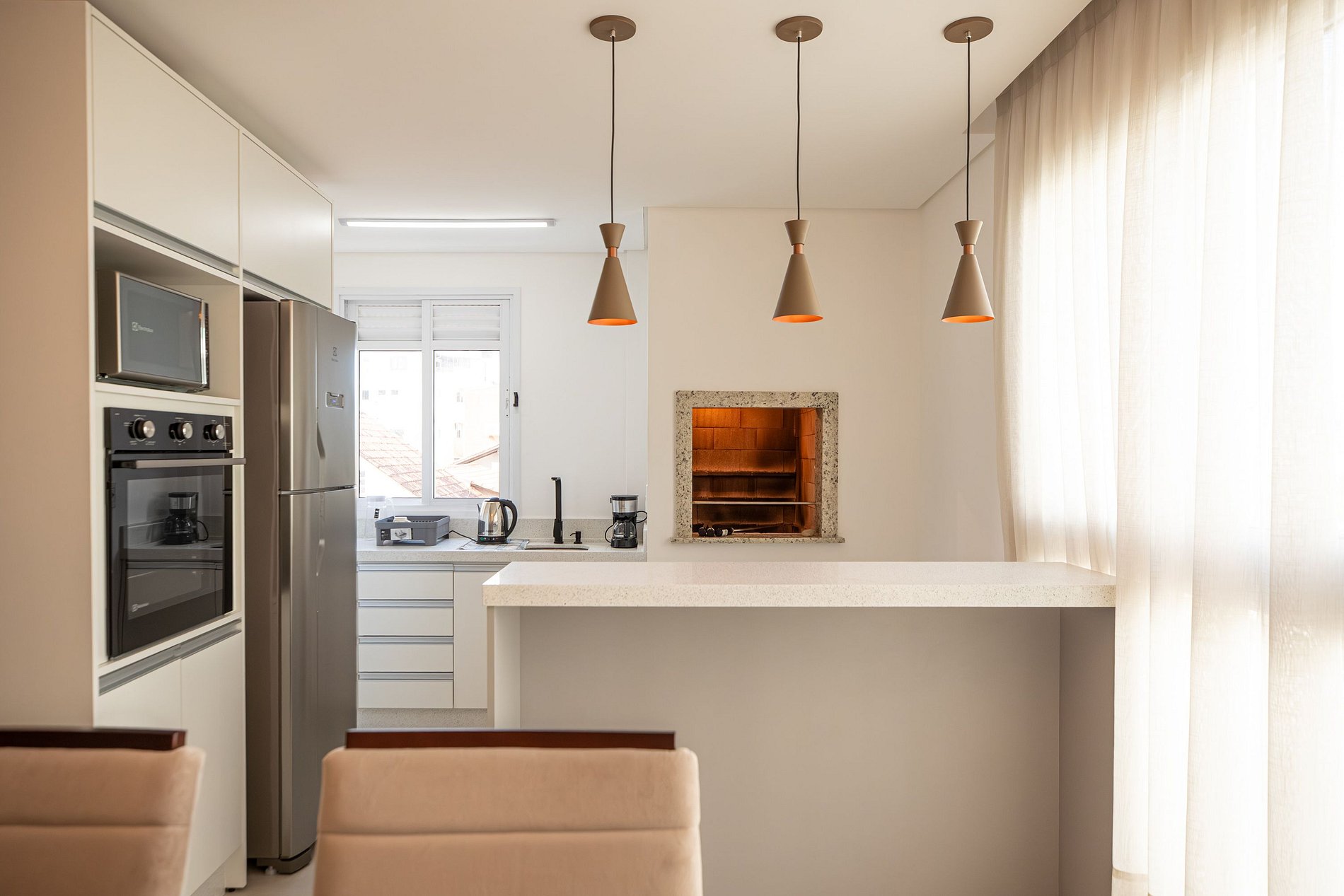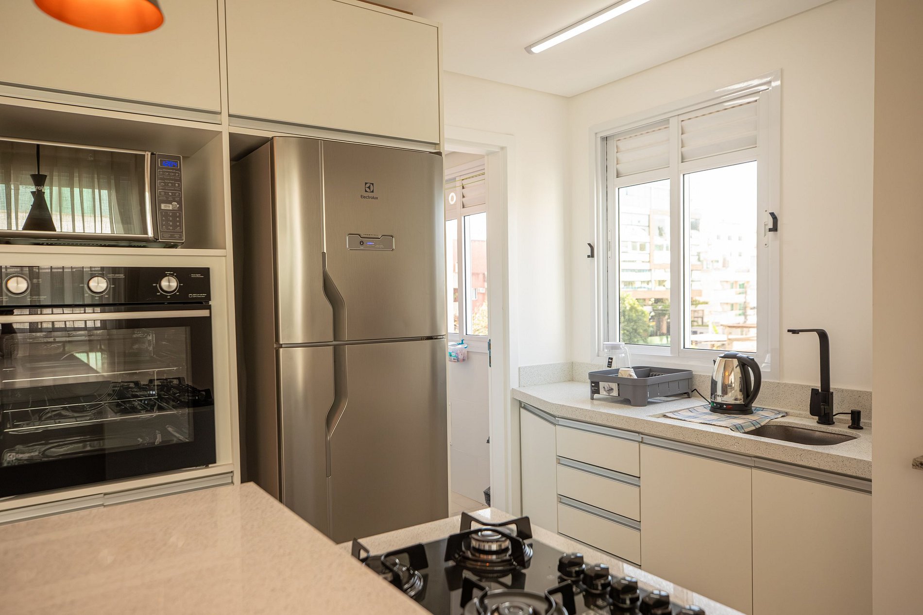 - Cozinha completa (geladeira, fogão/forno, micro-ondas, utensílios)