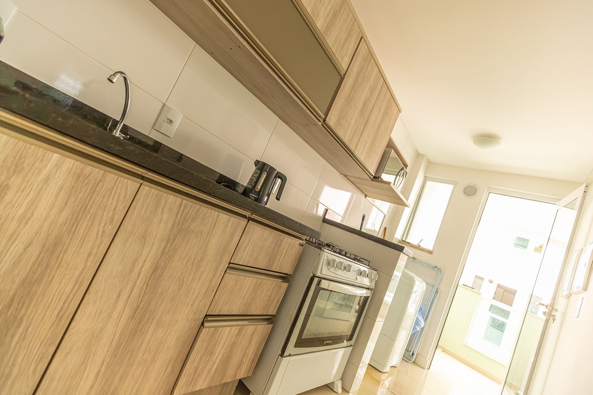 O condomínio possui piscina, salão de jogos e academia, tudo para uma estadia perfeita.