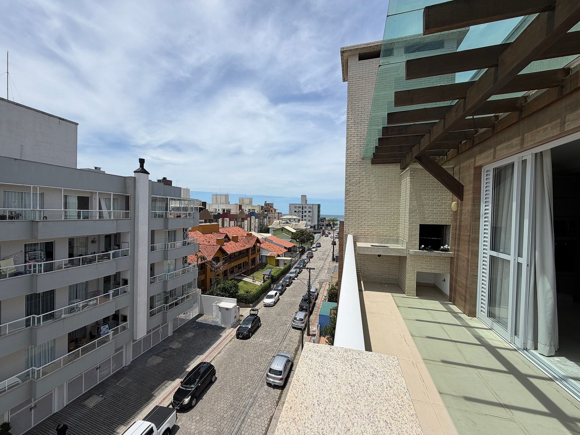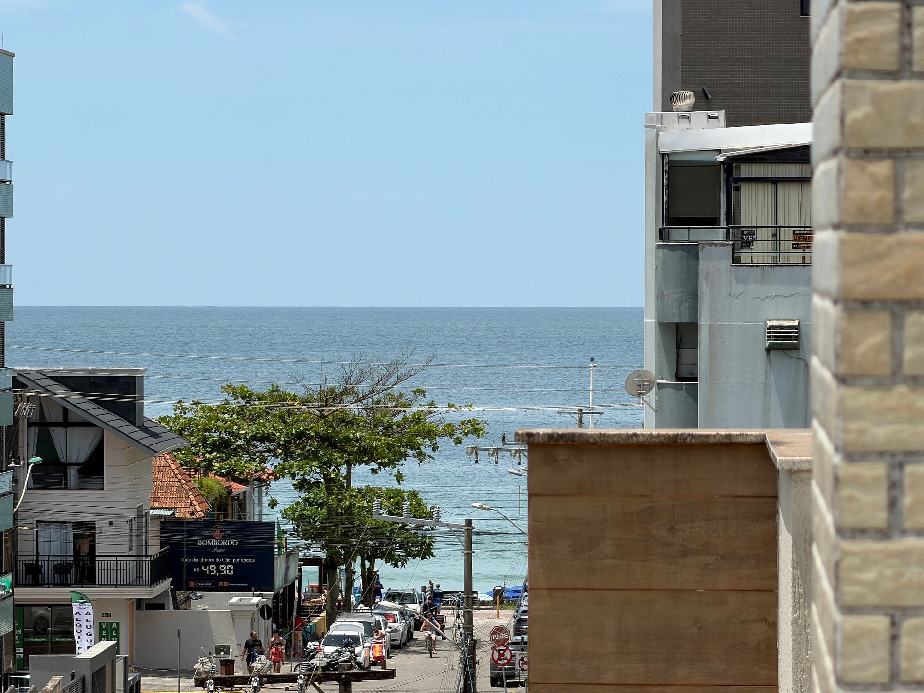 Cobertura em Bombas com vista para o mar, a 180m da praia e a 250m da Passarela do Ribeiro. 3 quartos (até 6 hóspedes), 2 banheiros, varanda com churrasqueira, cozinha completa, ar-condicionado, Wi-Fi, Smart TV e 2 vagas de garagem. Bestiny: sem perrengue — só trip.