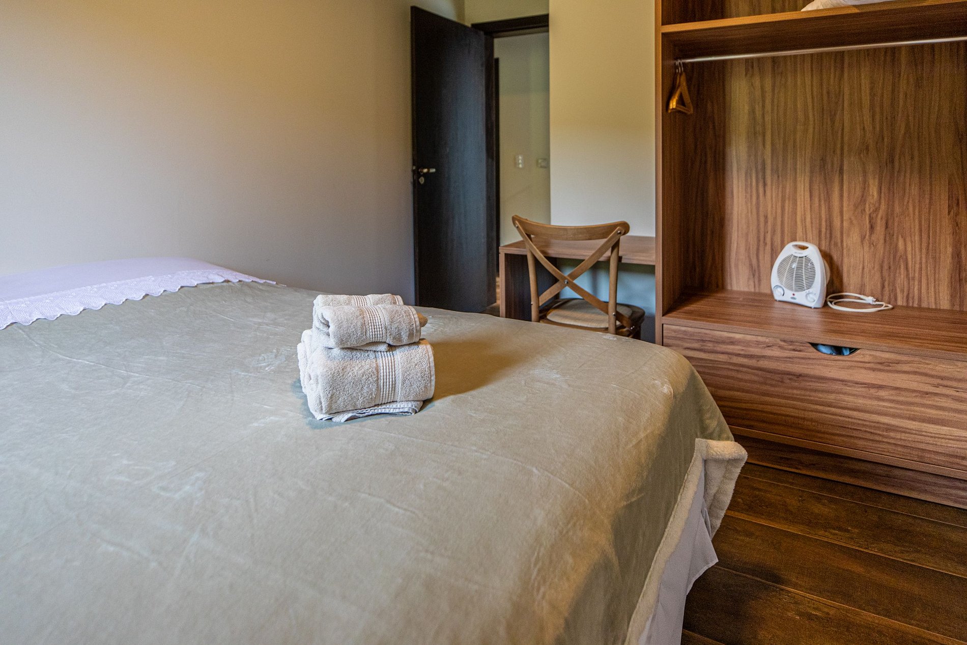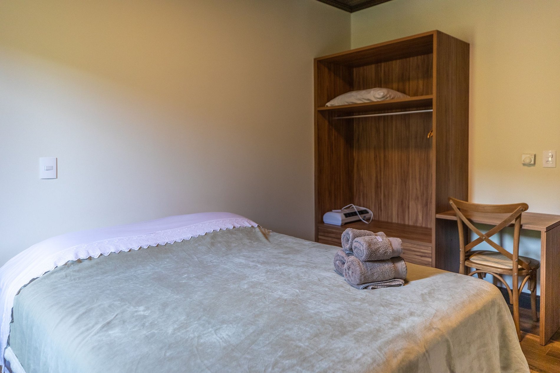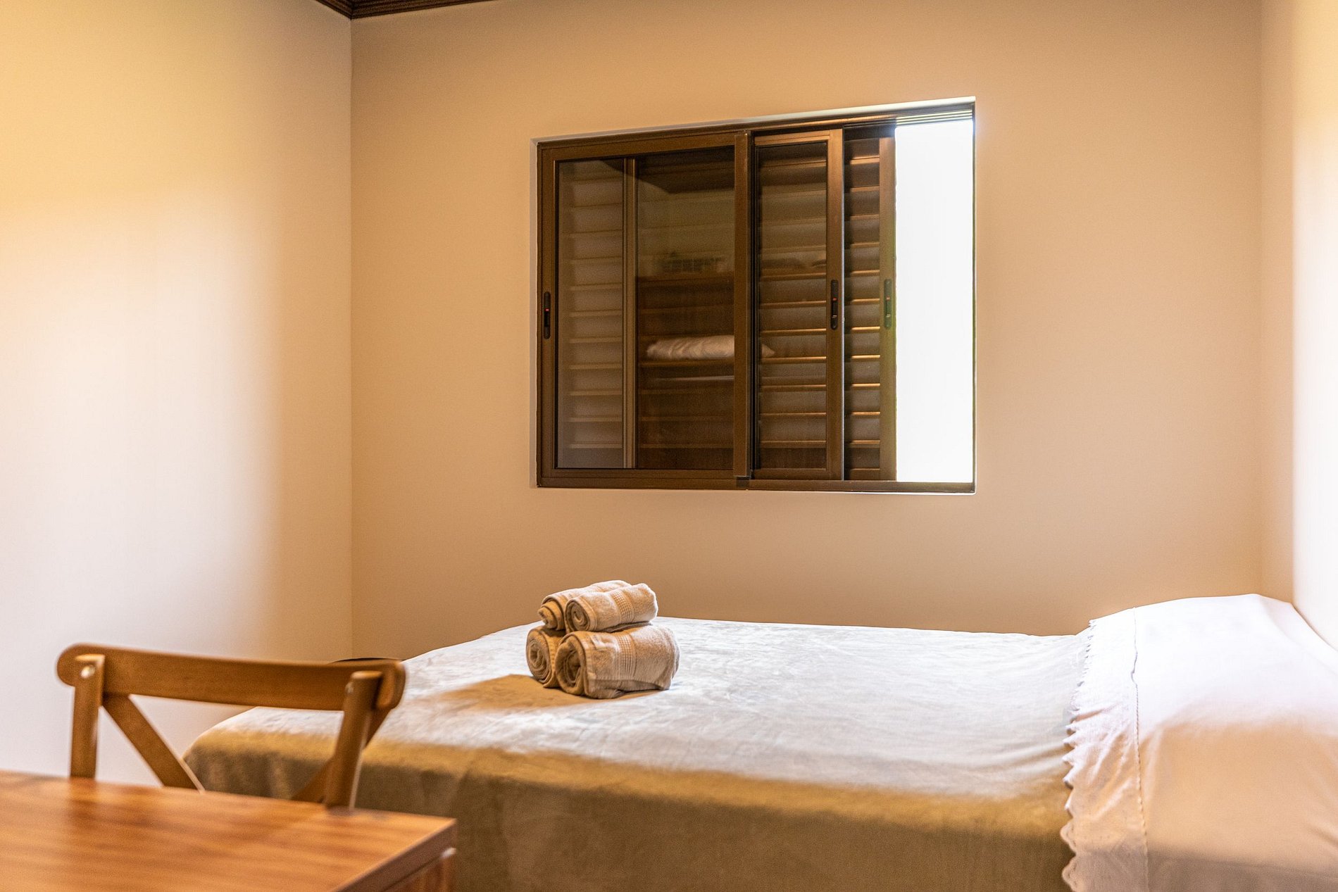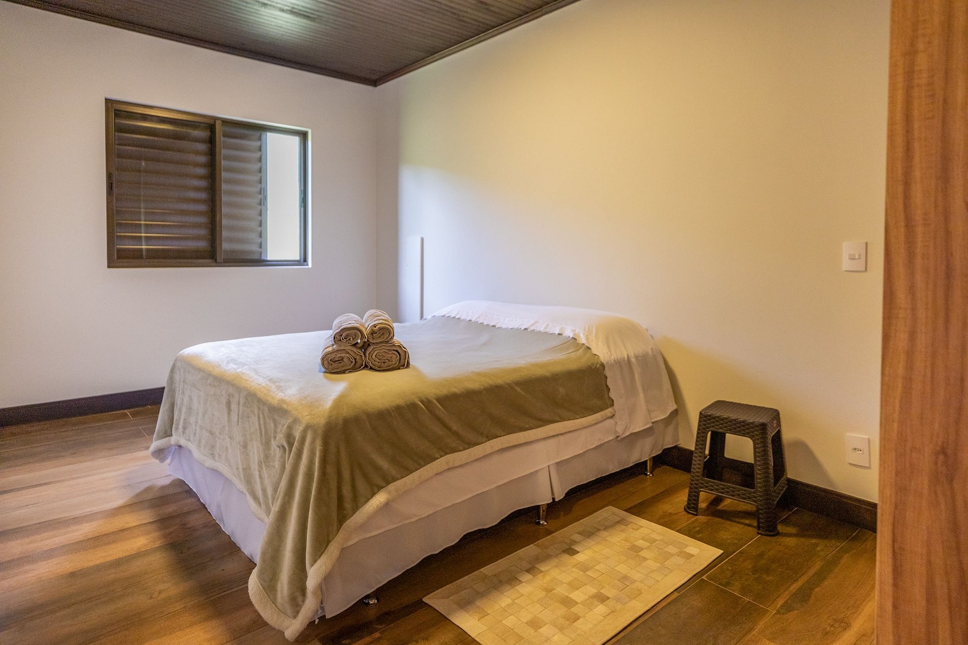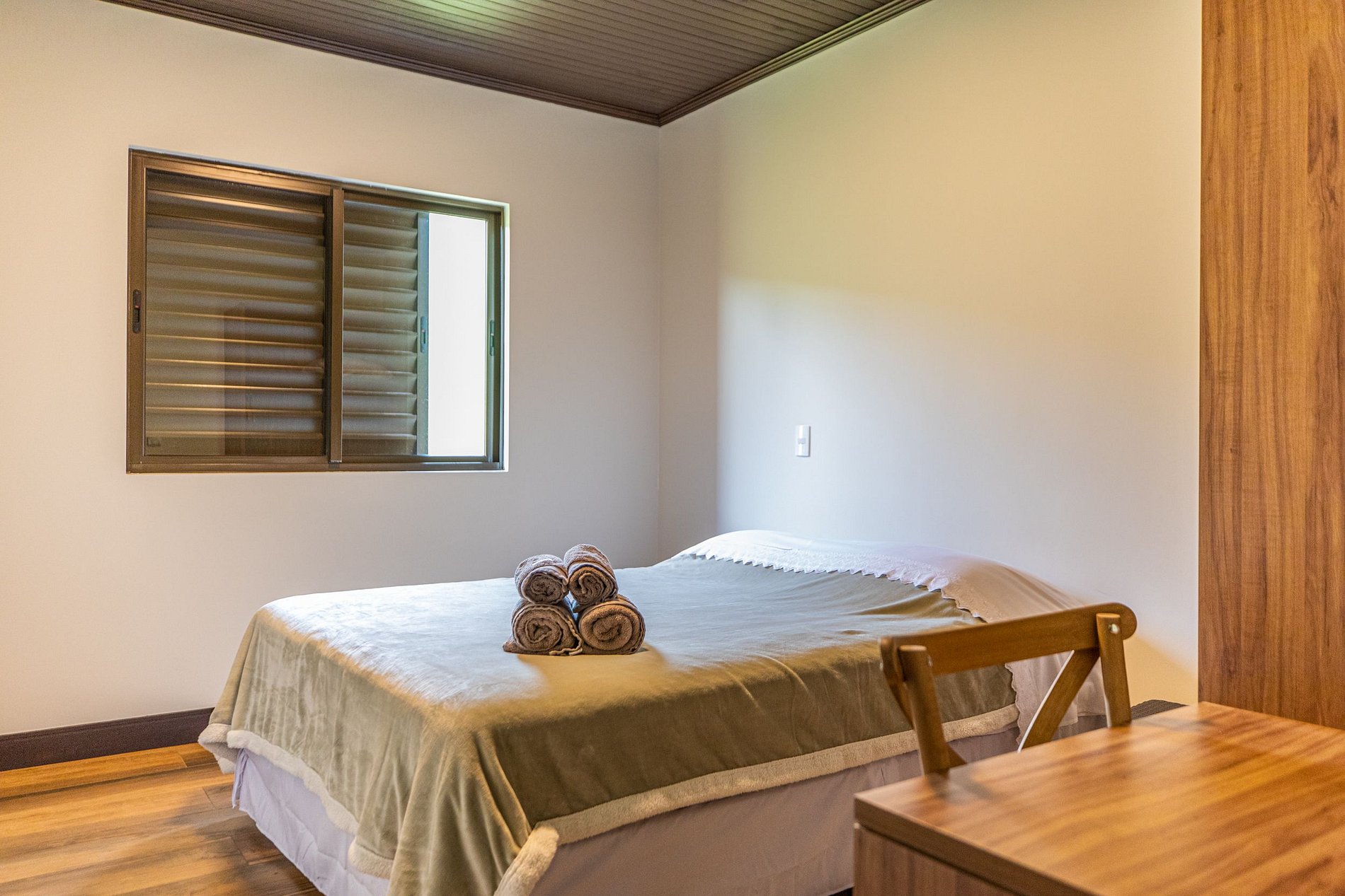 Nos quartos temos camas de casal (lençóis 400fios), tudo novinho, com marcenaria projetada especialmente para o hospede ter o máximo conforto.
