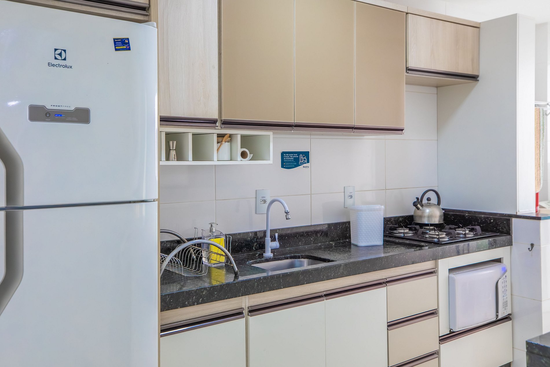 - Geladeira, Micro-ondas, Fogão.