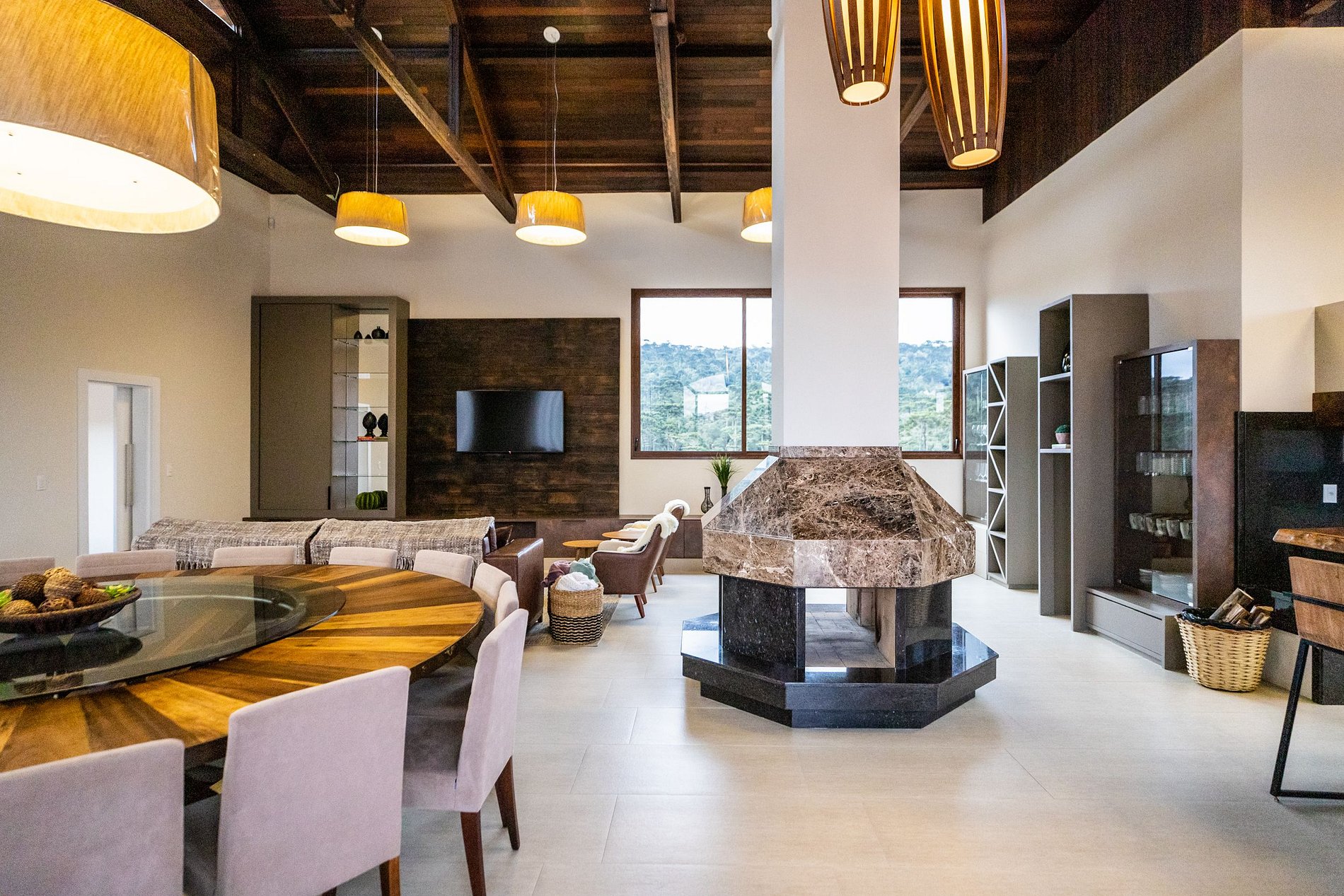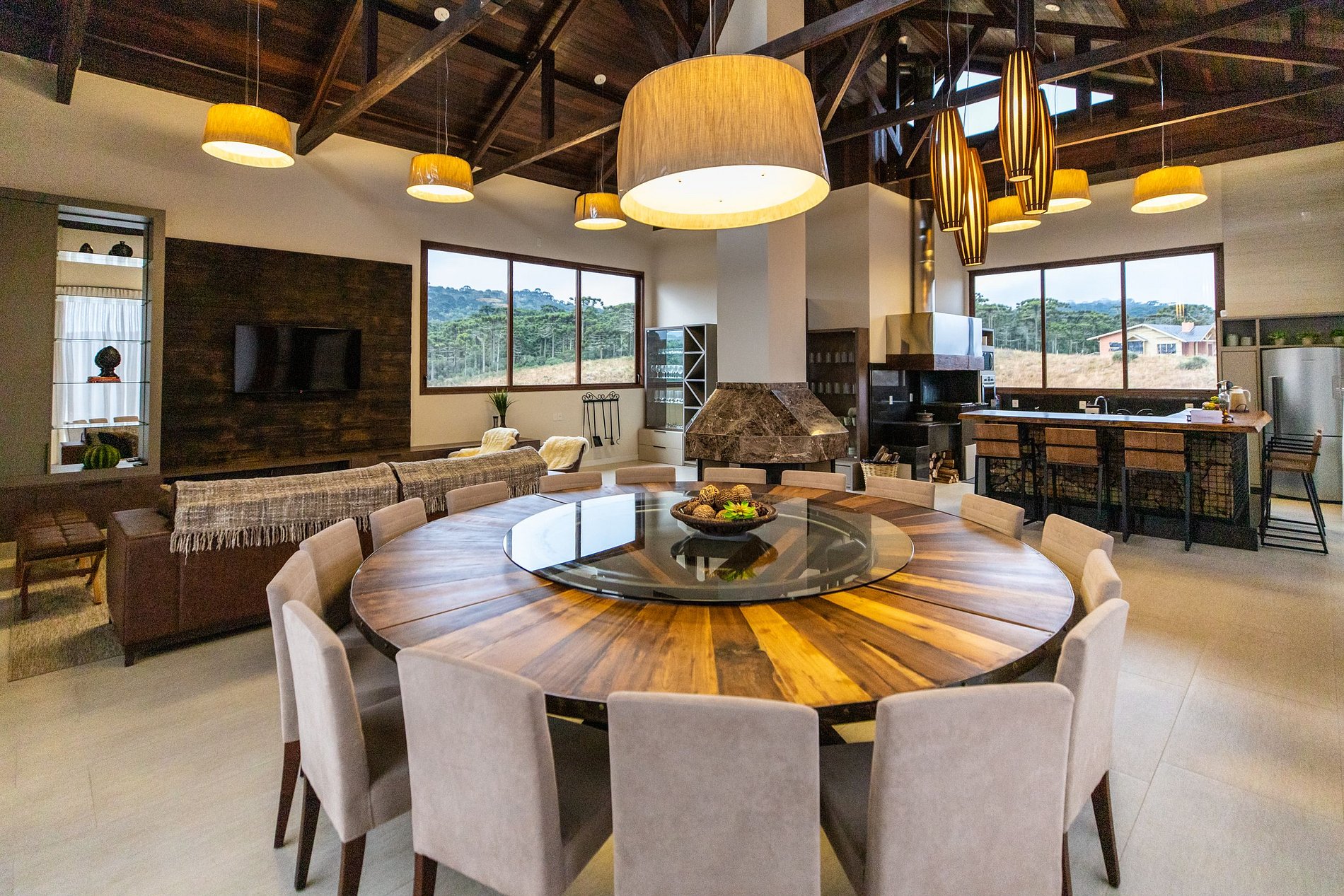No ambiente, os hóspedes podem desfrutar das aconchegantes três suítes, com camas de casal, sala de estar, sala de jantar, cozinha e lareira.