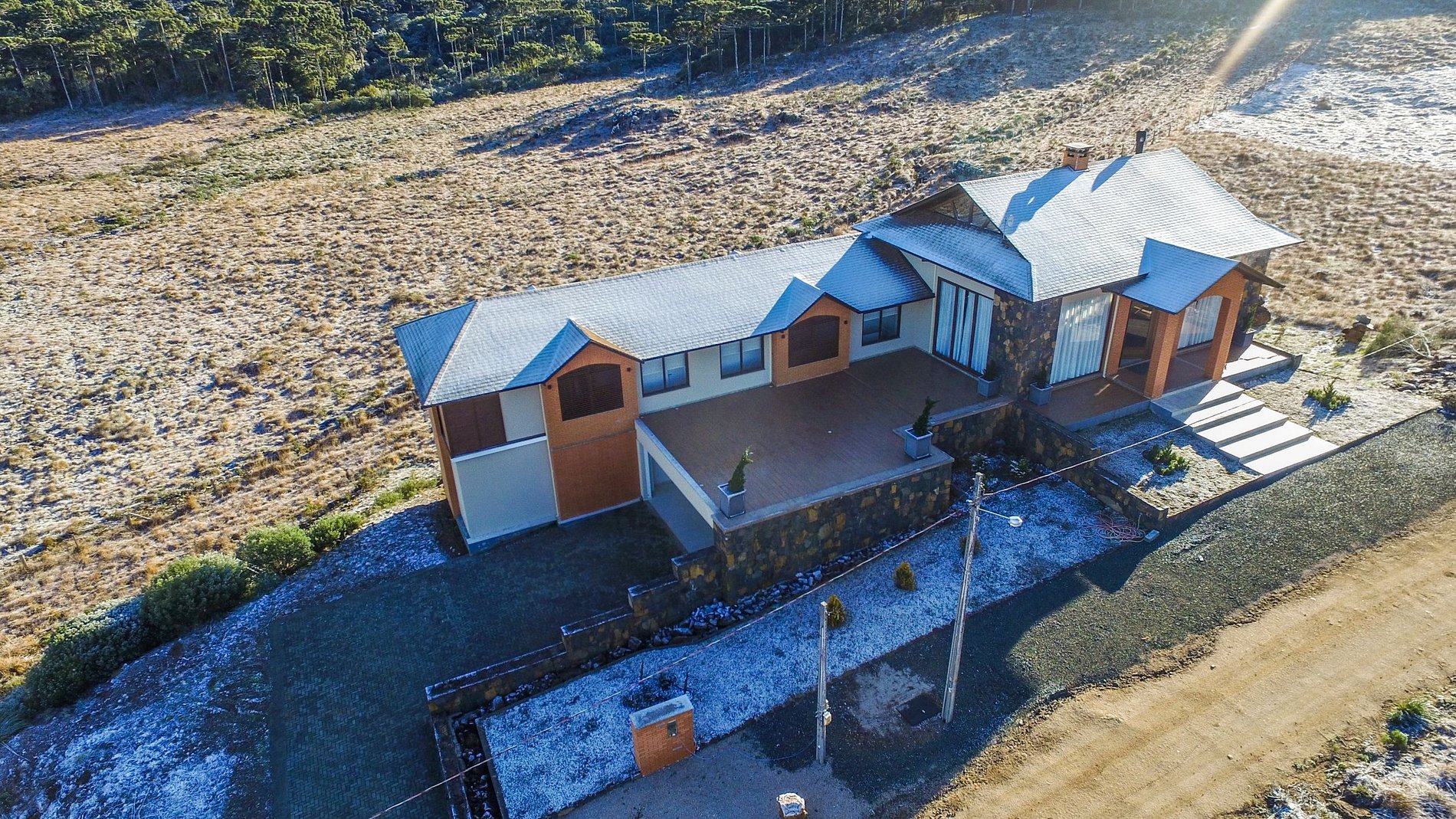 Residência localizada no Condomínio Altos da Serra, em Bom Jardim da Serra, apoucos minutos do Mirante da Serra do Rio do Rastro, dos cânions, cachoeiras e araucárias que formam paisagens de muita beleza.