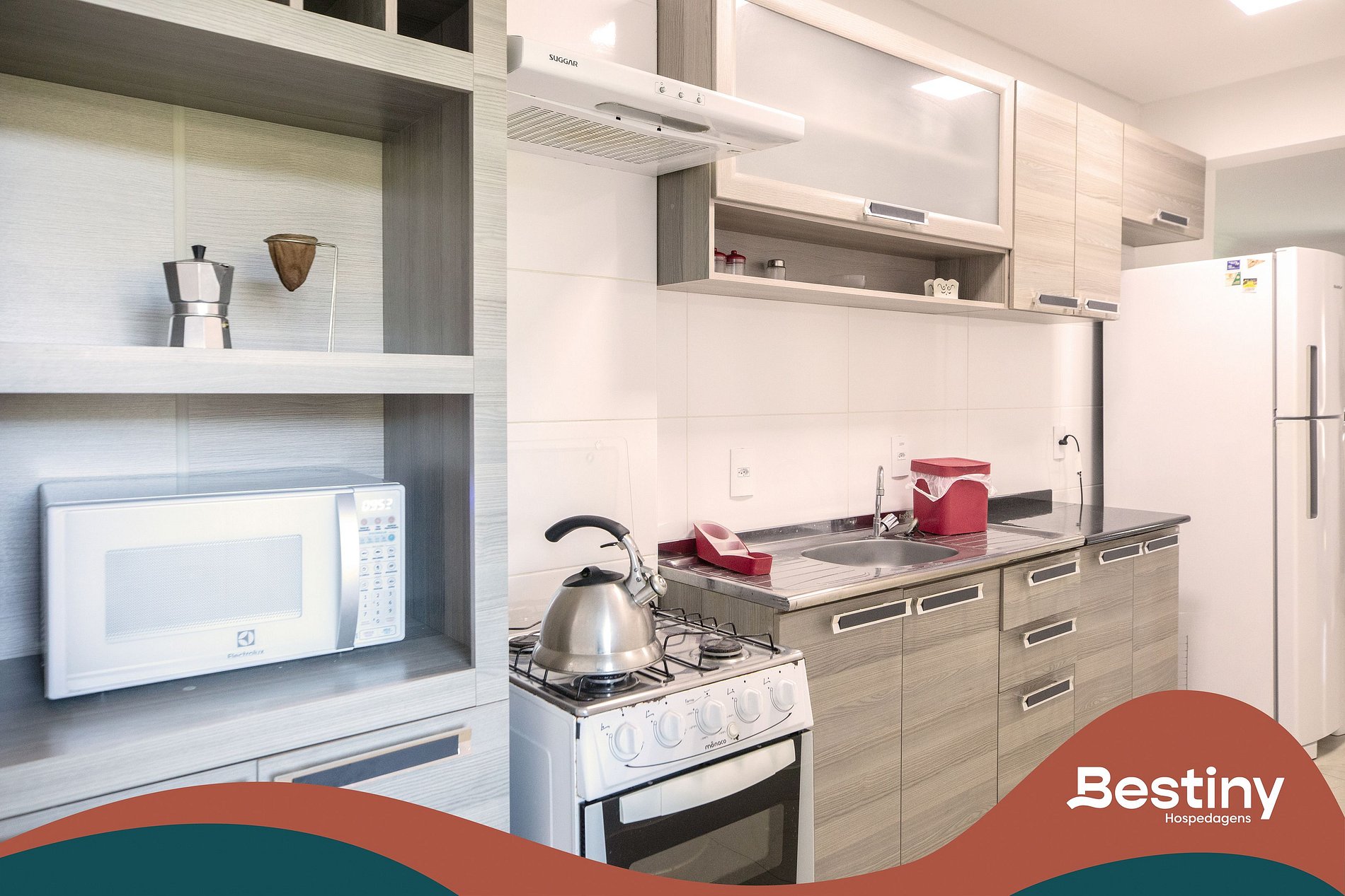 - Geladeira, Micro-ondas, Fogão.