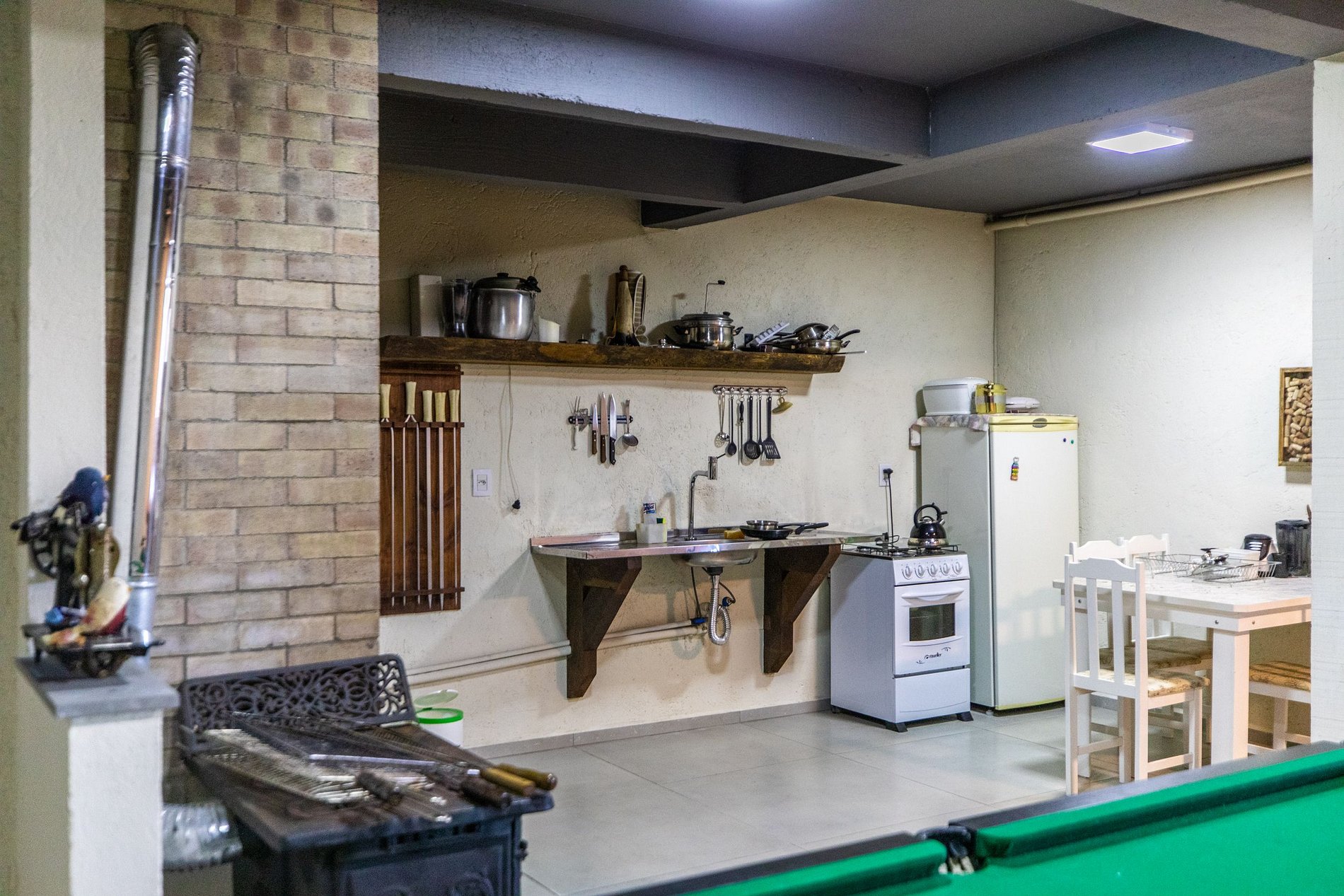 O grande destaque de nosso térreo é o fogão a lenha para pizzas! Seja você mesmo seu pizzaiolo e desfrute ao máximo de nossa casa!