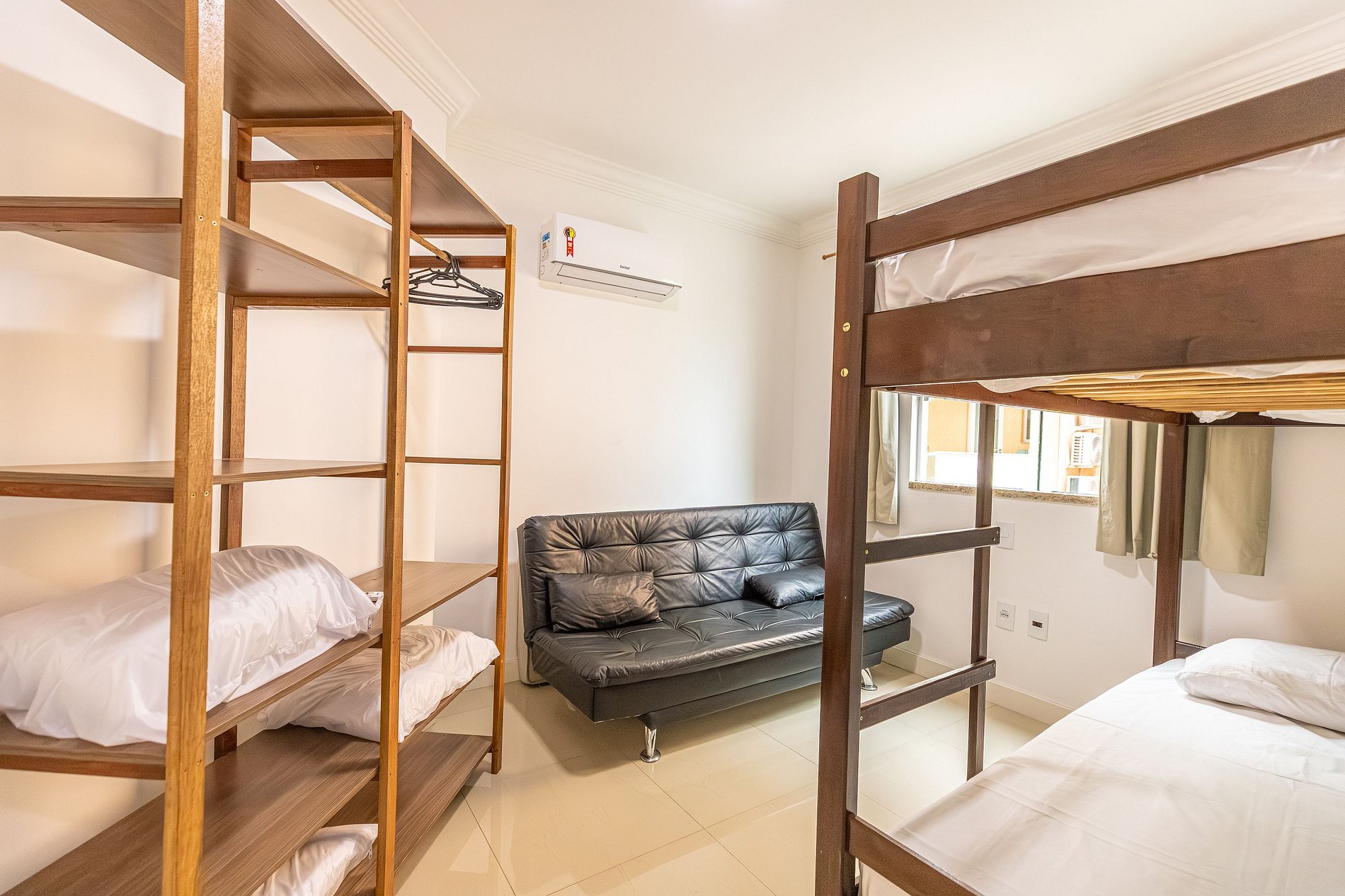 O condomínio possui piscina, salão de jogos e academia, tudo para uma estadia perfeita.