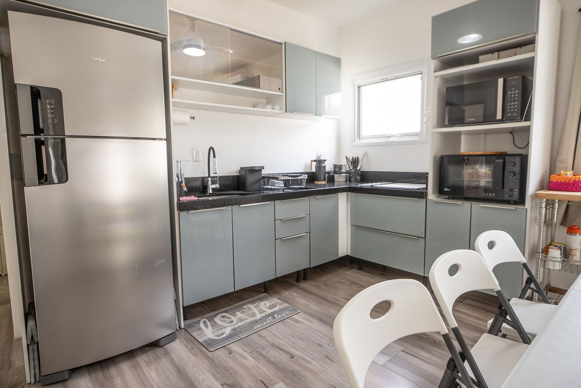 - Cozinha equipada (fogão, micro-ondas, geladeira, utensílios)