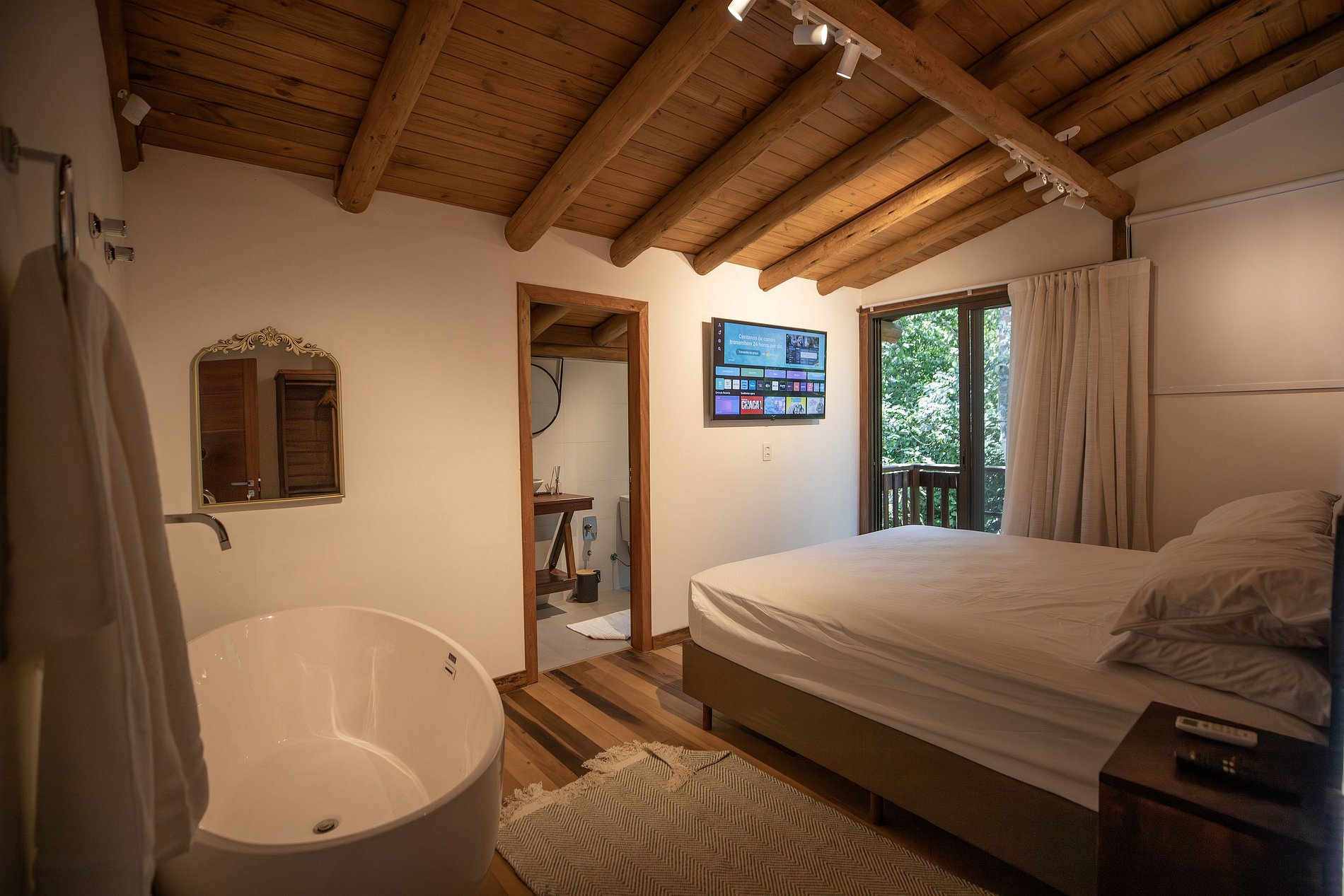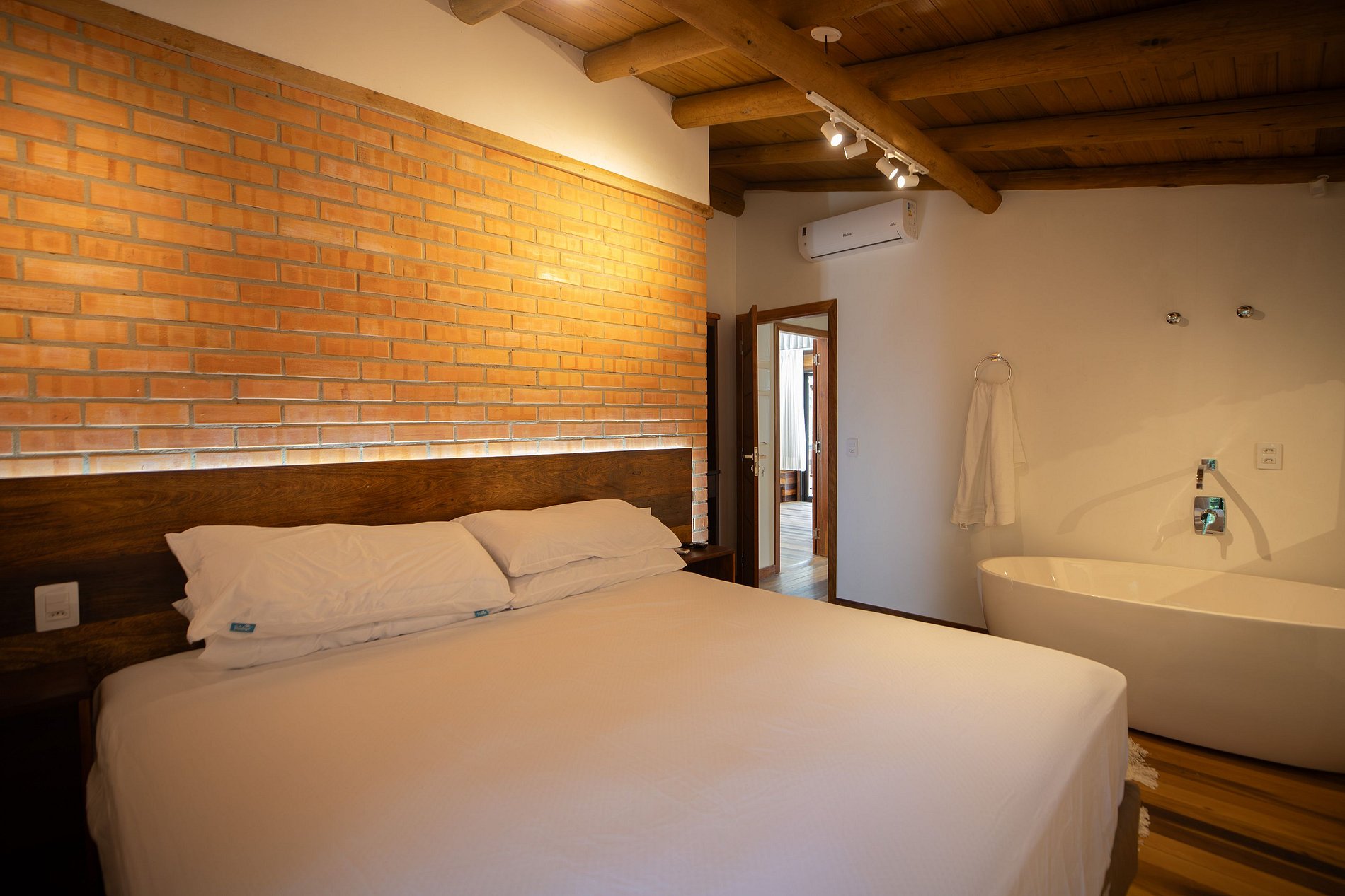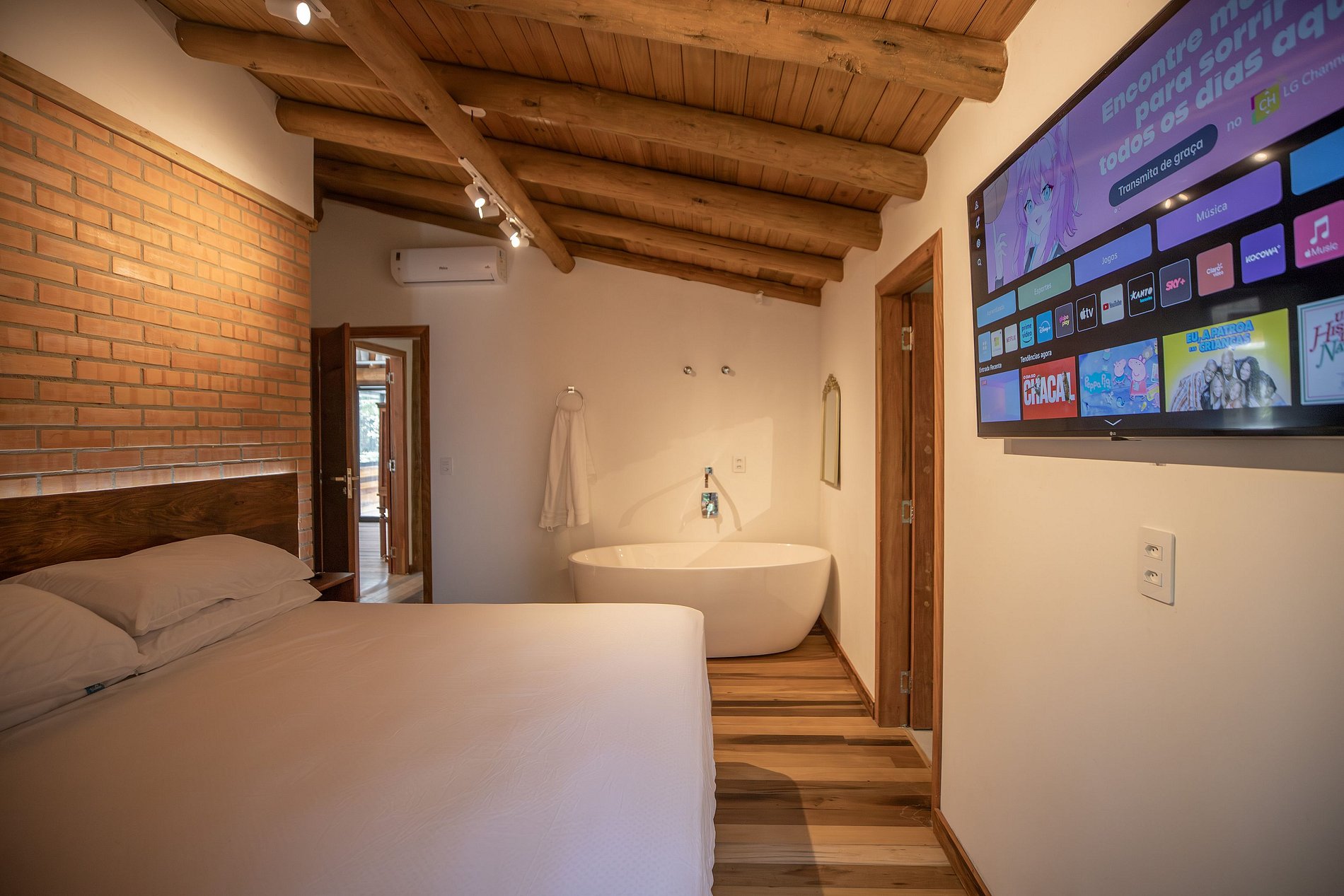 - Suíte luxo com banheira de imersão e chuveiro spa