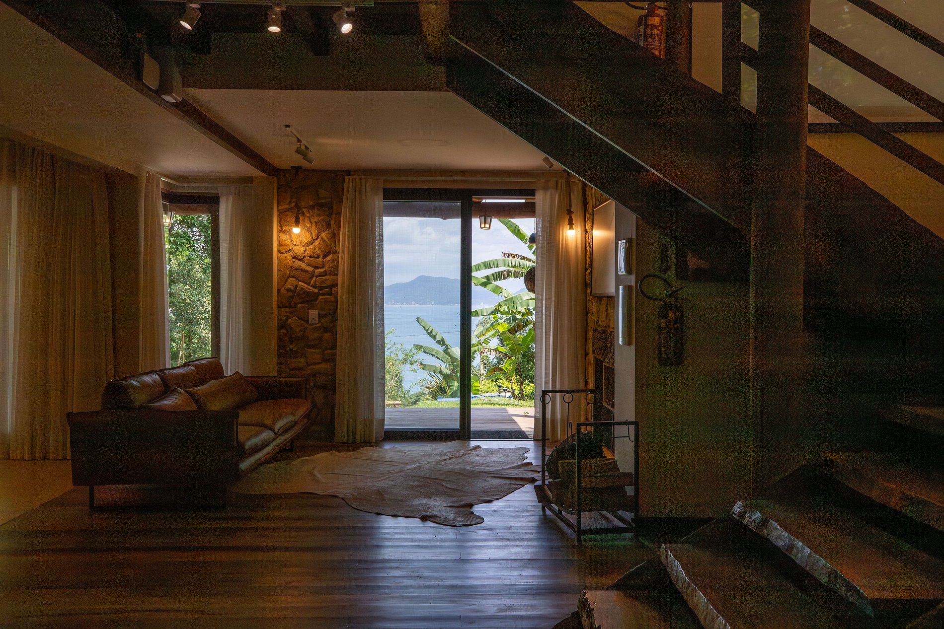 Descubra o Paraíso na Praia do Estaleiro, uma Cabana de alto luxo em Porto Belo, Santa Catarina, que oferece uma vista deslumbrante do pôr do sol.