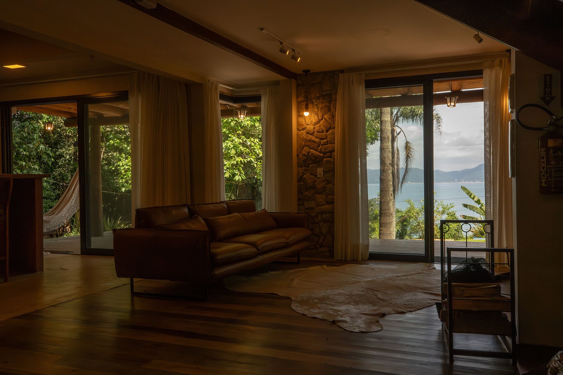 Descubra o Paraíso na Praia do Estaleiro, uma Cabana de alto luxo em Porto Belo, Santa Catarina, que oferece uma vista deslumbrante do pôr do sol.
