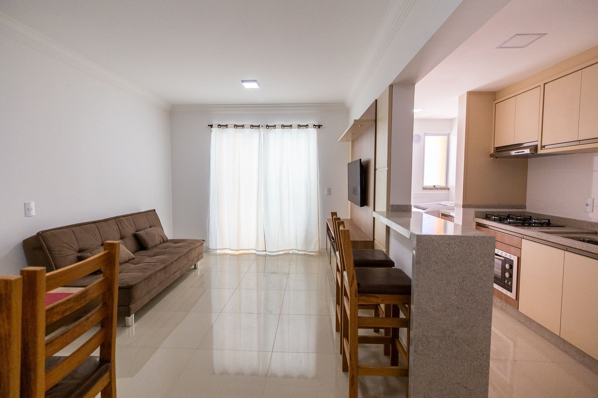 Apartamento adequado para estadias a trabalho ou a passeio. Condomínio inclui área de lazer com piscina e sala de jogos.