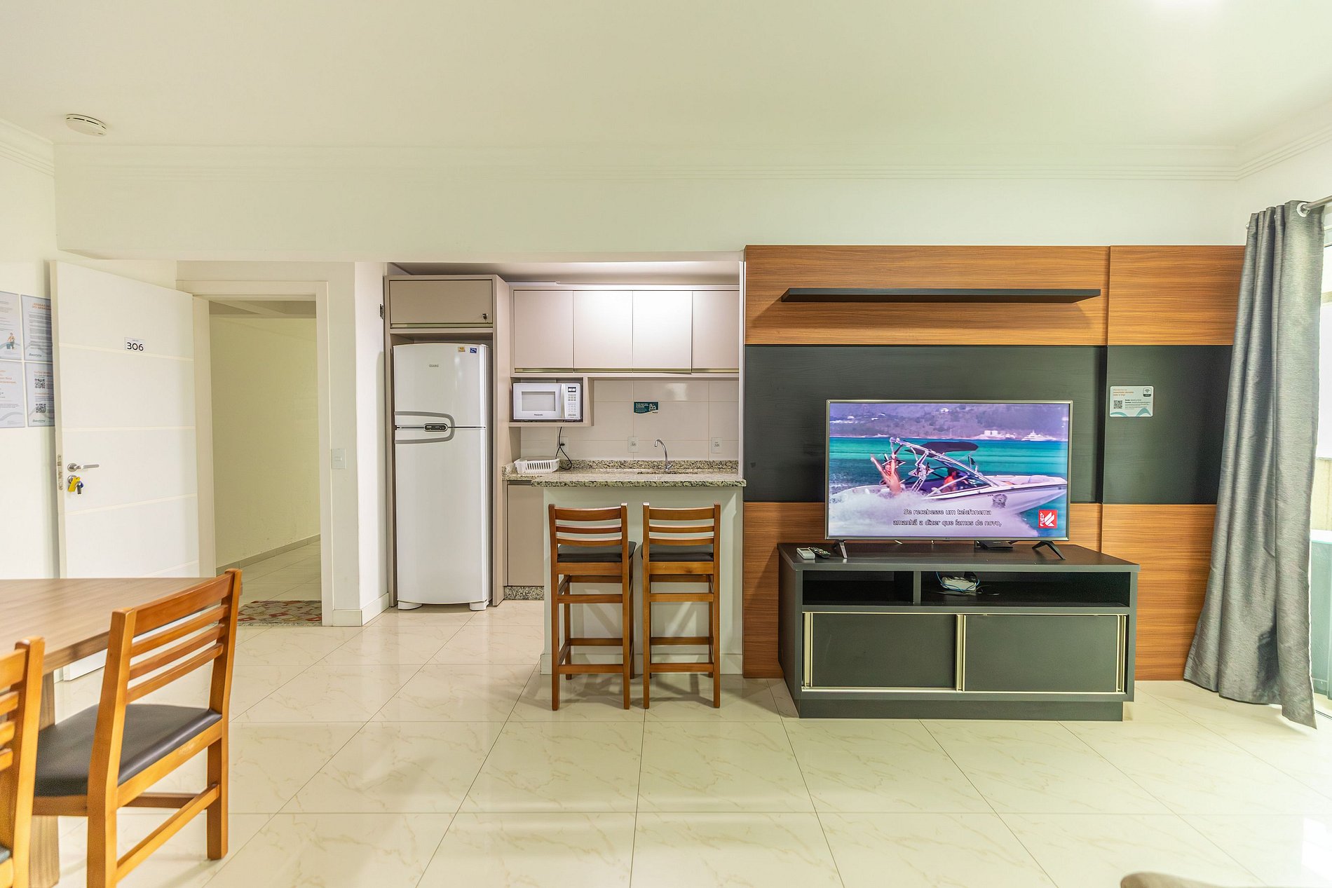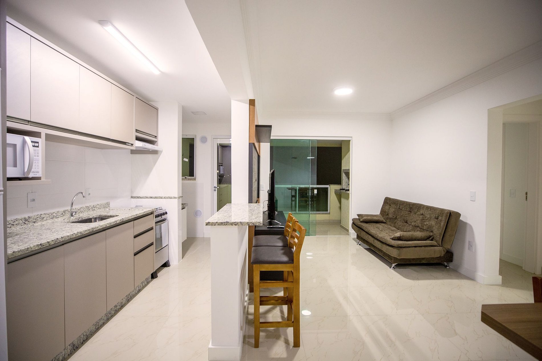 - Geladeira, Micro-ondas, Fogão.