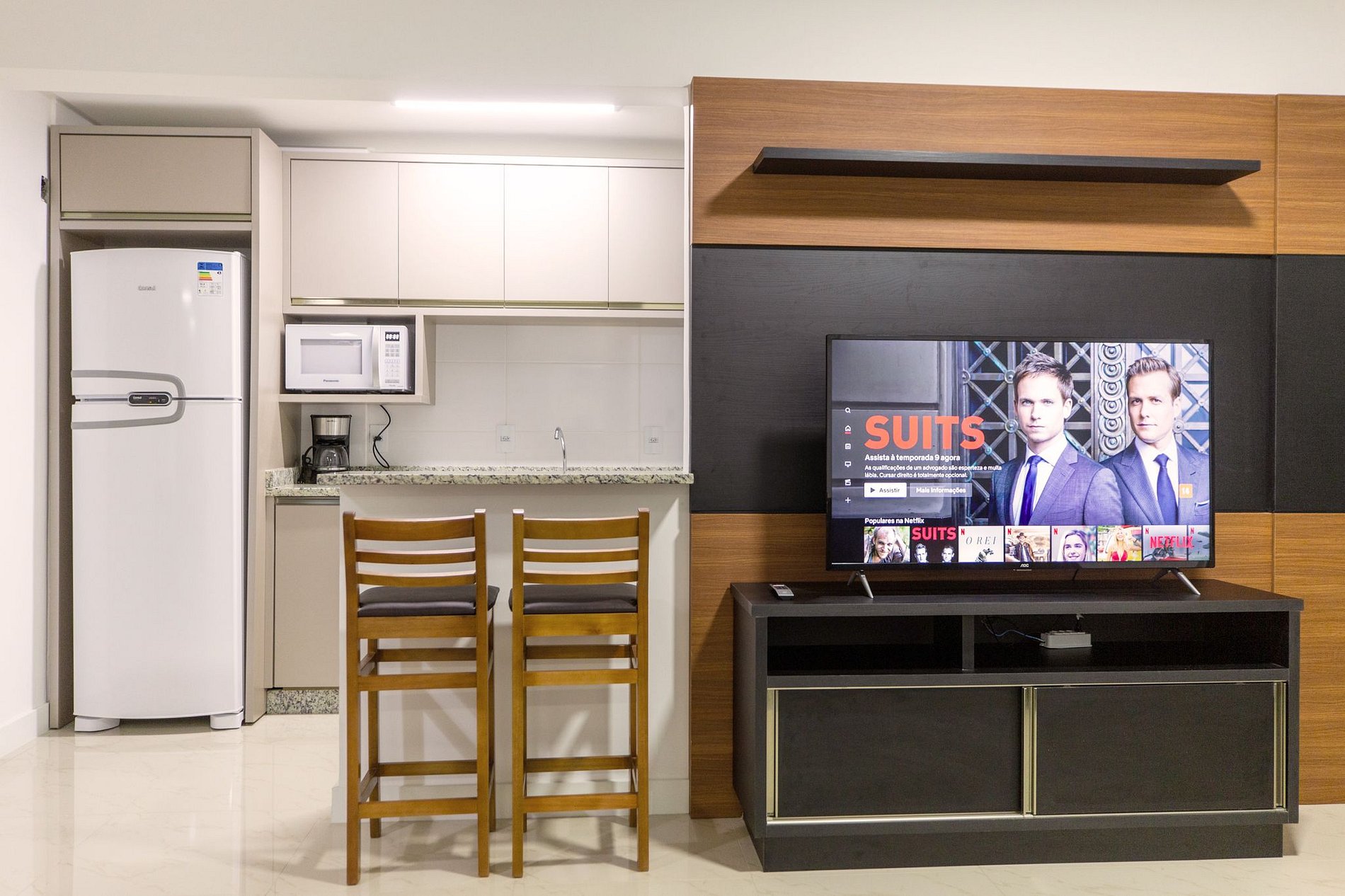 Ar condicionado e TV completa (inclusive Netflix).