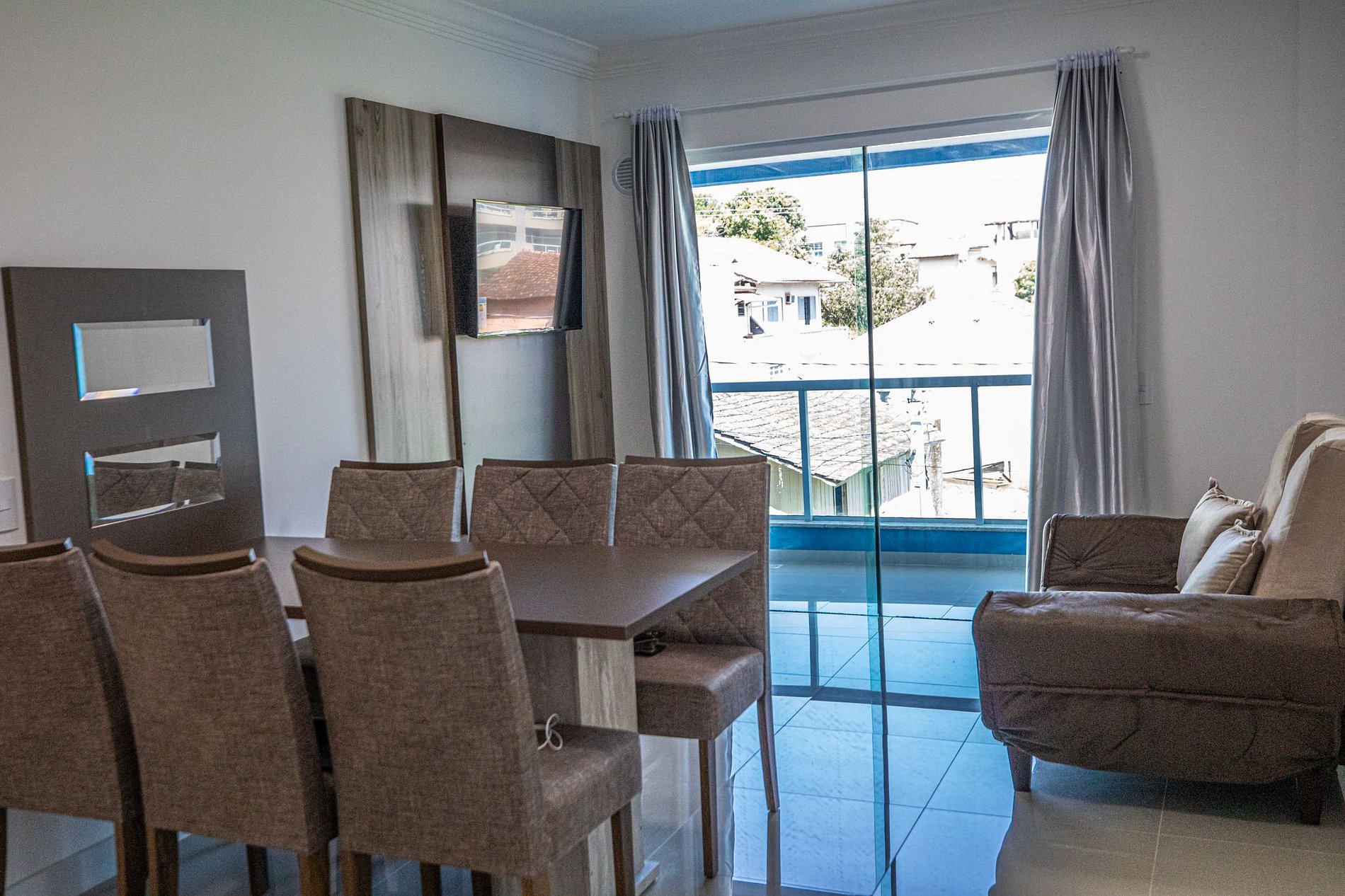 Uma de nossas melhores hospedagens. Apartamento novo, espaçoso, confortável, limpo, TV smart na sala e quarto. Ar condicionado na sala e nos quartos. Muitos eletrodomésticos à disposição. Sem falar da estrutura que o condomínio oferece: piscina, sala de jogos e academia. Quando voltar à Bombinhas, certamente quero passar mais dias lá. Super recomendo.