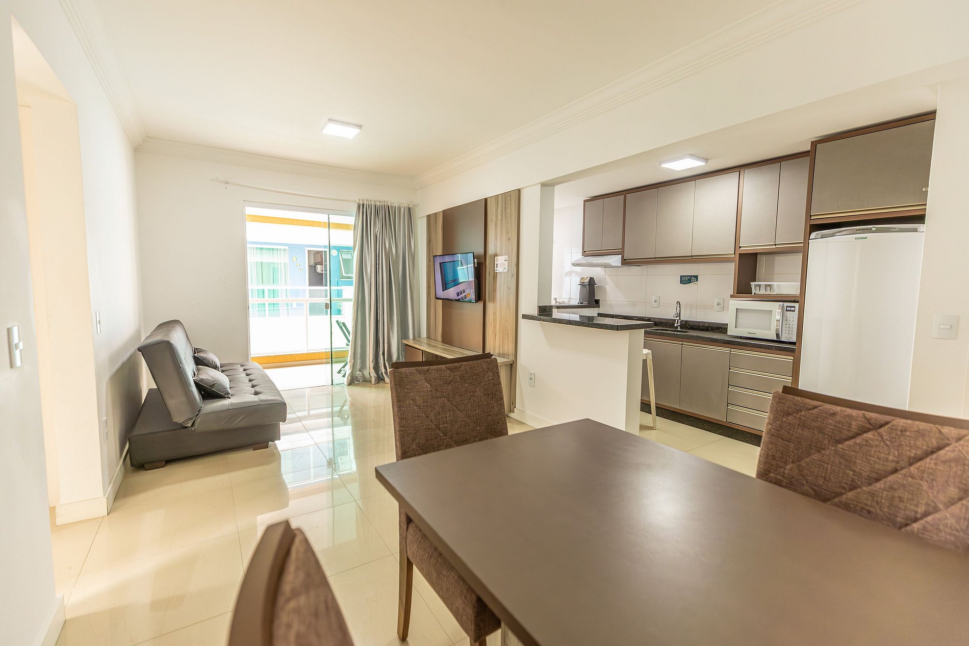 Um apartamento bem completo contendo tudo que a de necessário para de utilizar ao longo dos dias hospedados, perfeito.