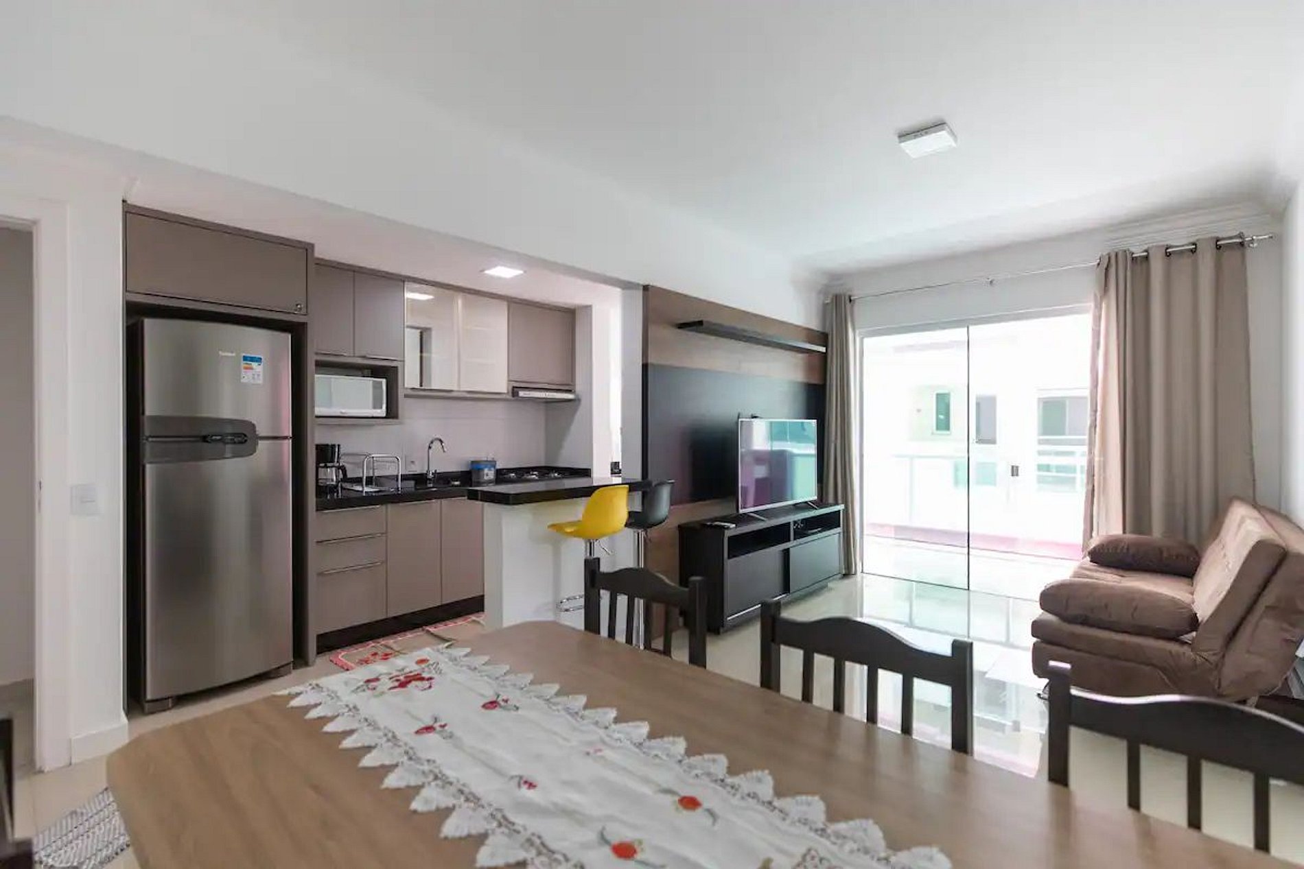 O apartamento é super aconchegante, tudo novo, Wi-Fi funciona super bem, televisão, ótimo!!!